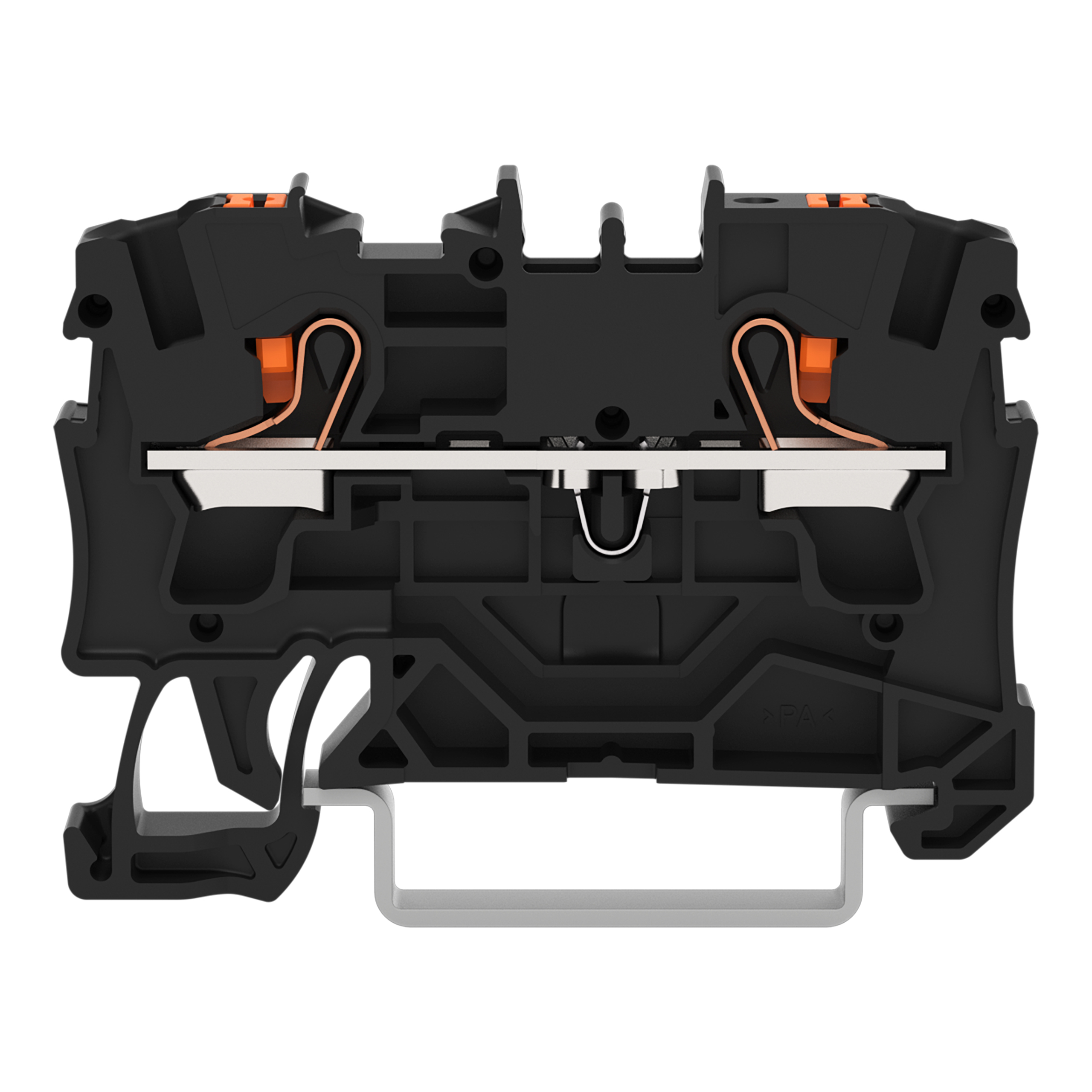 złączka przelotowa 2-przewodowa; z przyciskami; 4 mm²; z otworem pomiarowym; do zastosowań Ex e II; opis z boku i na środku; na szynę TS 35 x 15 i 35 x 7,5; Push-in CAGE CLAMP®; 4,00 mm²; czarny
