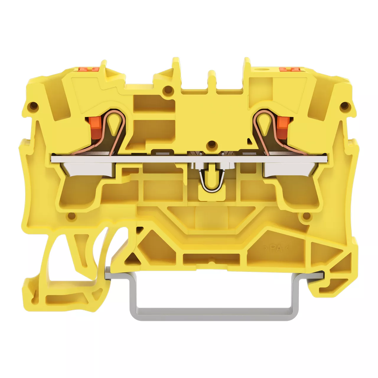 złączka przelotowa 2-przewodowa; z przyciskami; 4 mm²; z otworem pomiarowym; do zastosowań Ex e II; opis z boku i na środku; na szynę TS 35 x 15 i 35 x 7,5; Push-in CAGE CLAMP®; 4,00 mm²; żółty