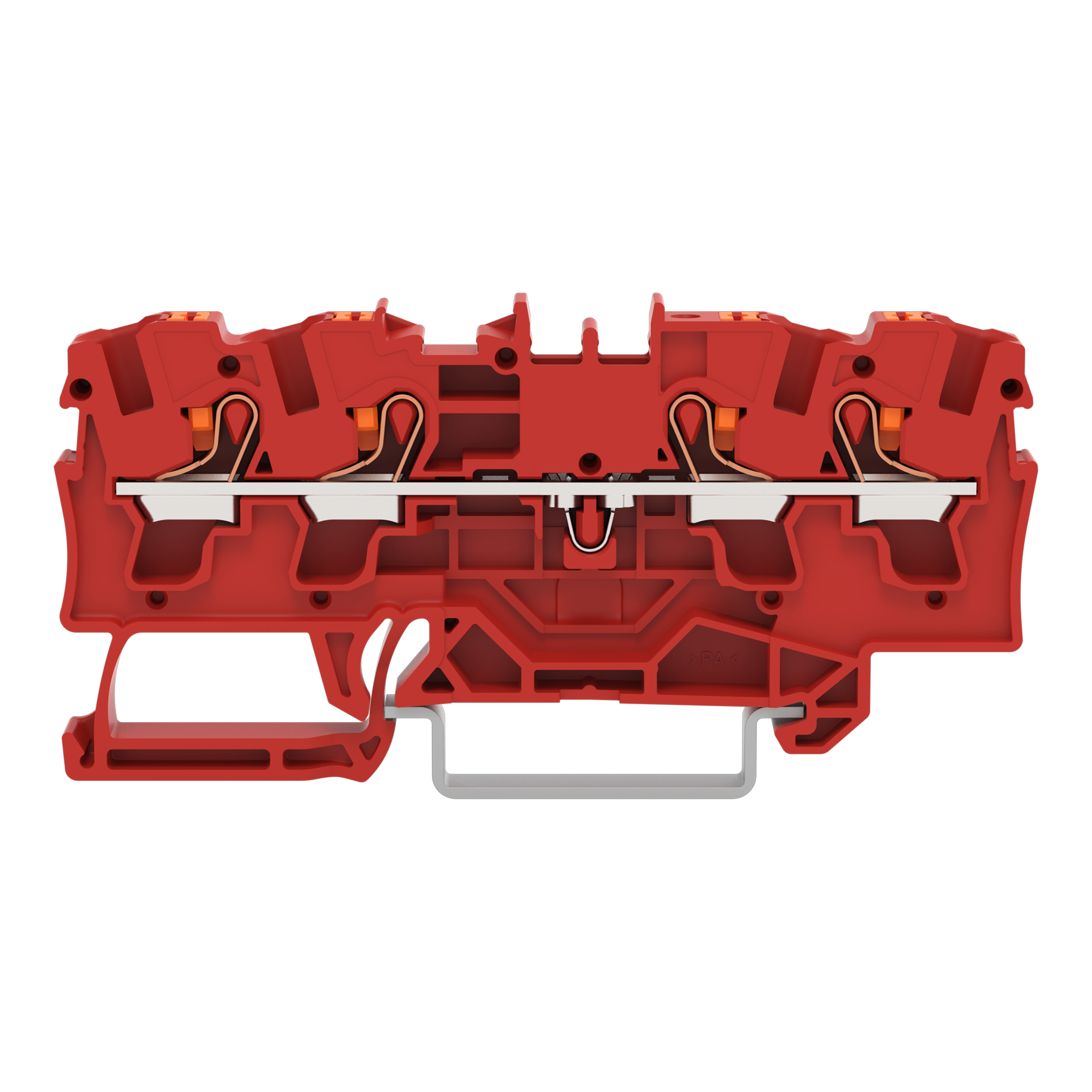 złączka przelotowa 4-przewodowa; z przyciskami; 4 mm²; z otworem pomiarowym; do zastosowań Ex e II; opis z boku i na środku; na szynę TS 35 x 15 i 35 x 7,5; Push-in CAGE CLAMP®; 4,00 mm²; czerwony
