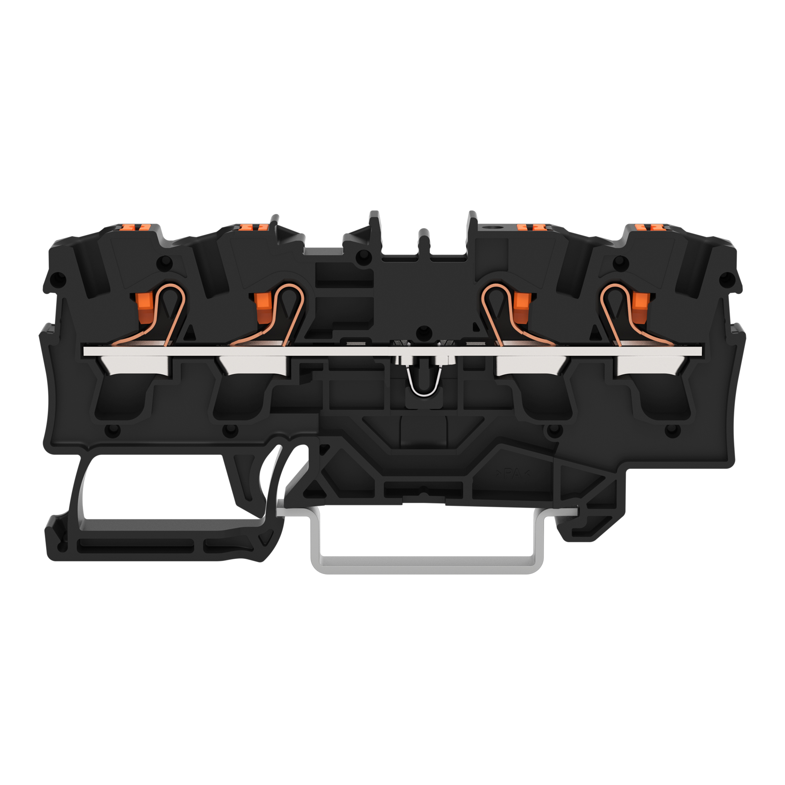 złączka przelotowa 4-przewodowa; z przyciskami; 4 mm²; z otworem pomiarowym; do zastosowań Ex e II; opis z boku i na środku; na szynę TS 35 x 15 i 35 x 7,5; Push-in CAGE CLAMP®; 4,00 mm²; czarny