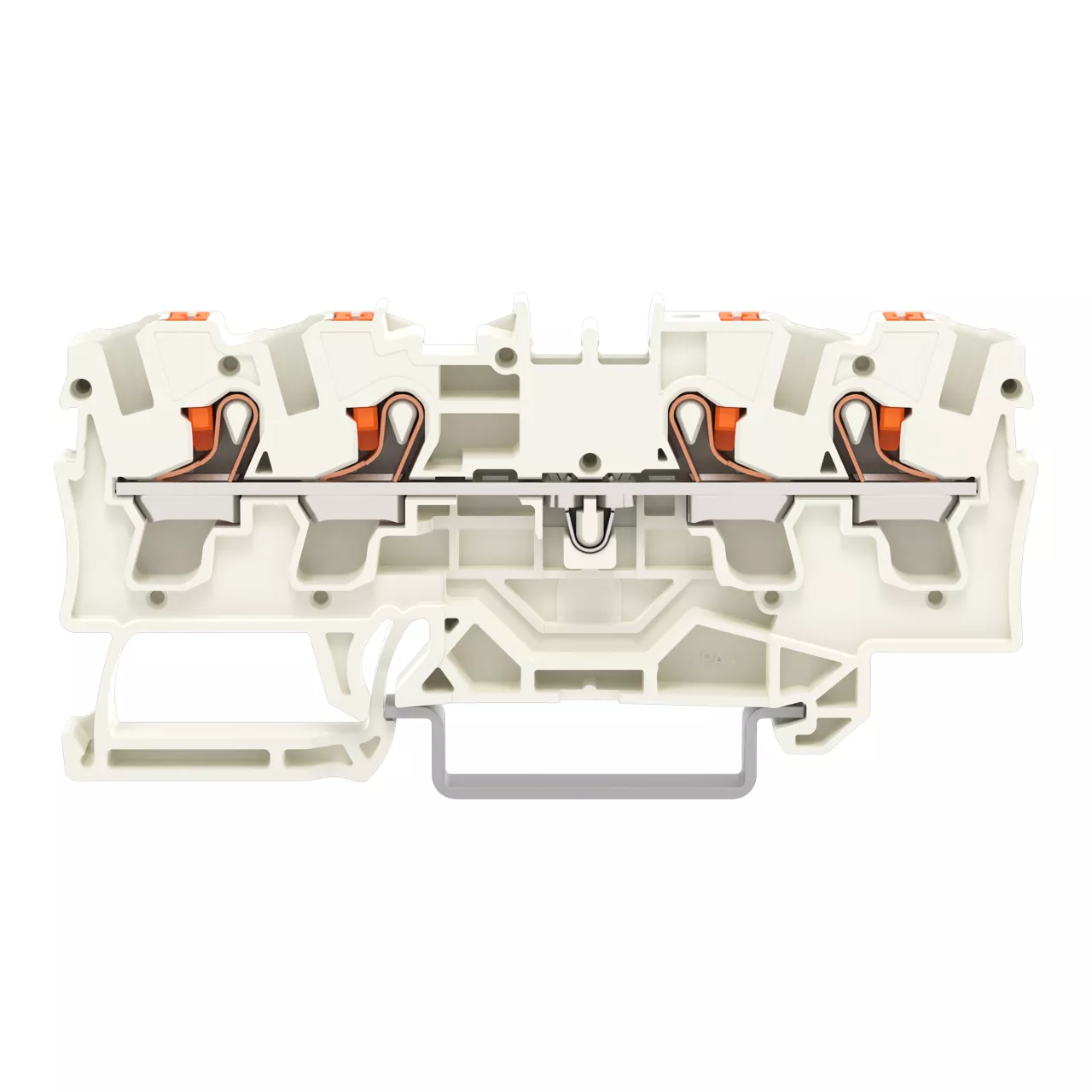 złączka przelotowa 4-przewodowa; z przyciskami; 4 mm²; z otworem pomiarowym; do zastosowań Ex e II; opis z boku i na środku; na szynę TS 35 x 15 i 35 x 7,5; Push-in CAGE CLAMP®; 4,00 mm²; jasnoszary