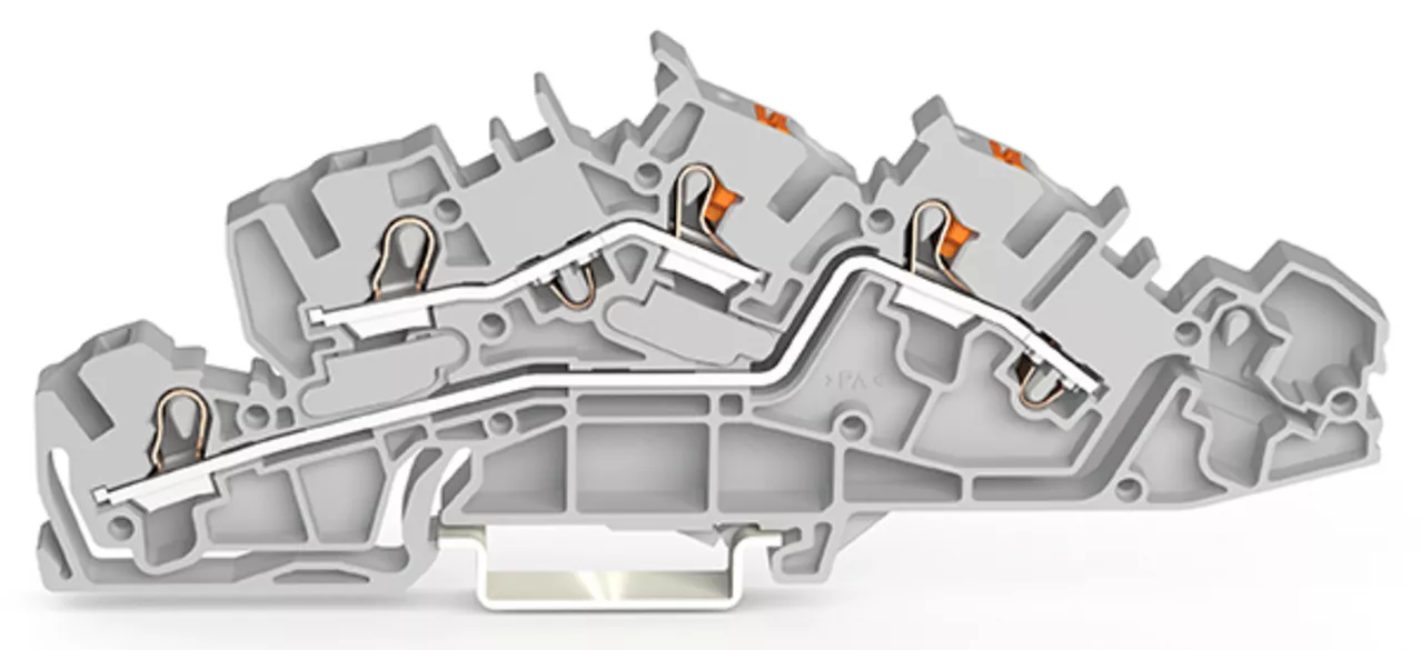 złączka instalacyjna piętrowa; z otworami montażowymi i przyciskami; 4 mm²; L/L; Push-in CAGE CLAMP®; 4,00 mm²; szary