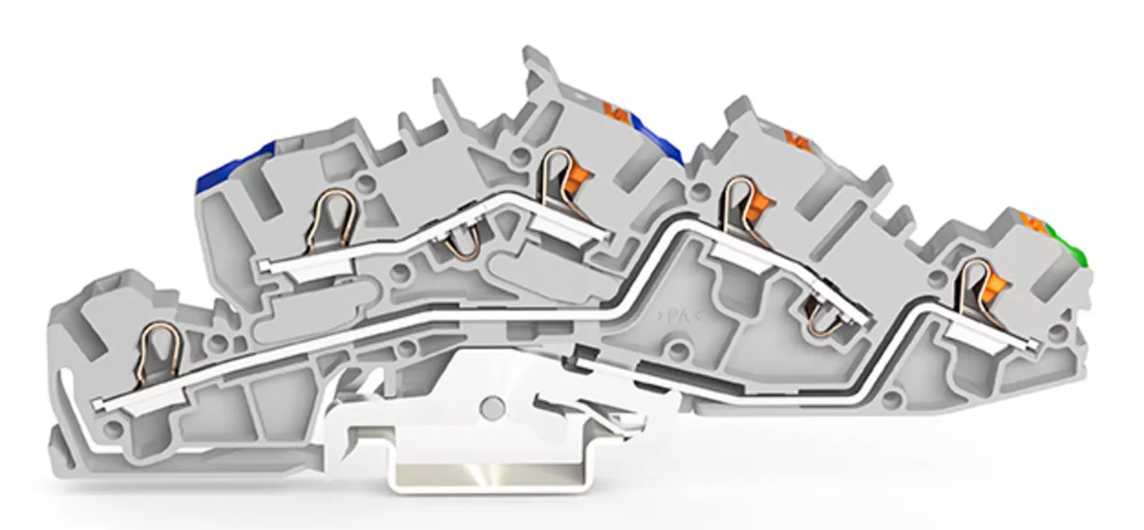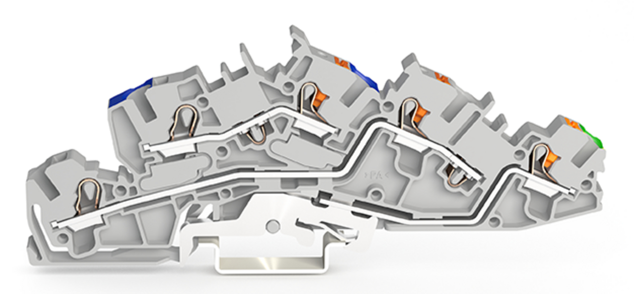 Piętrowa złączka instalacyjna; z otworami montażowymi i przyciskami; 4 mm²; N/L/PE; Push-in CAGE CLAMP®; 4,00 mm²; szara