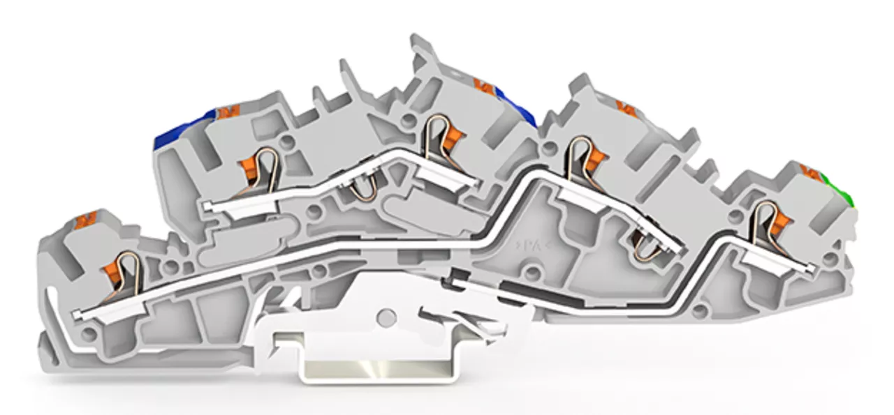 Piętrowa złączka instalacyjna; z przyciskiem; 4 mm²; N/L/PE; Push-in CAGE CLAMP®; 4,00 mm²; szara