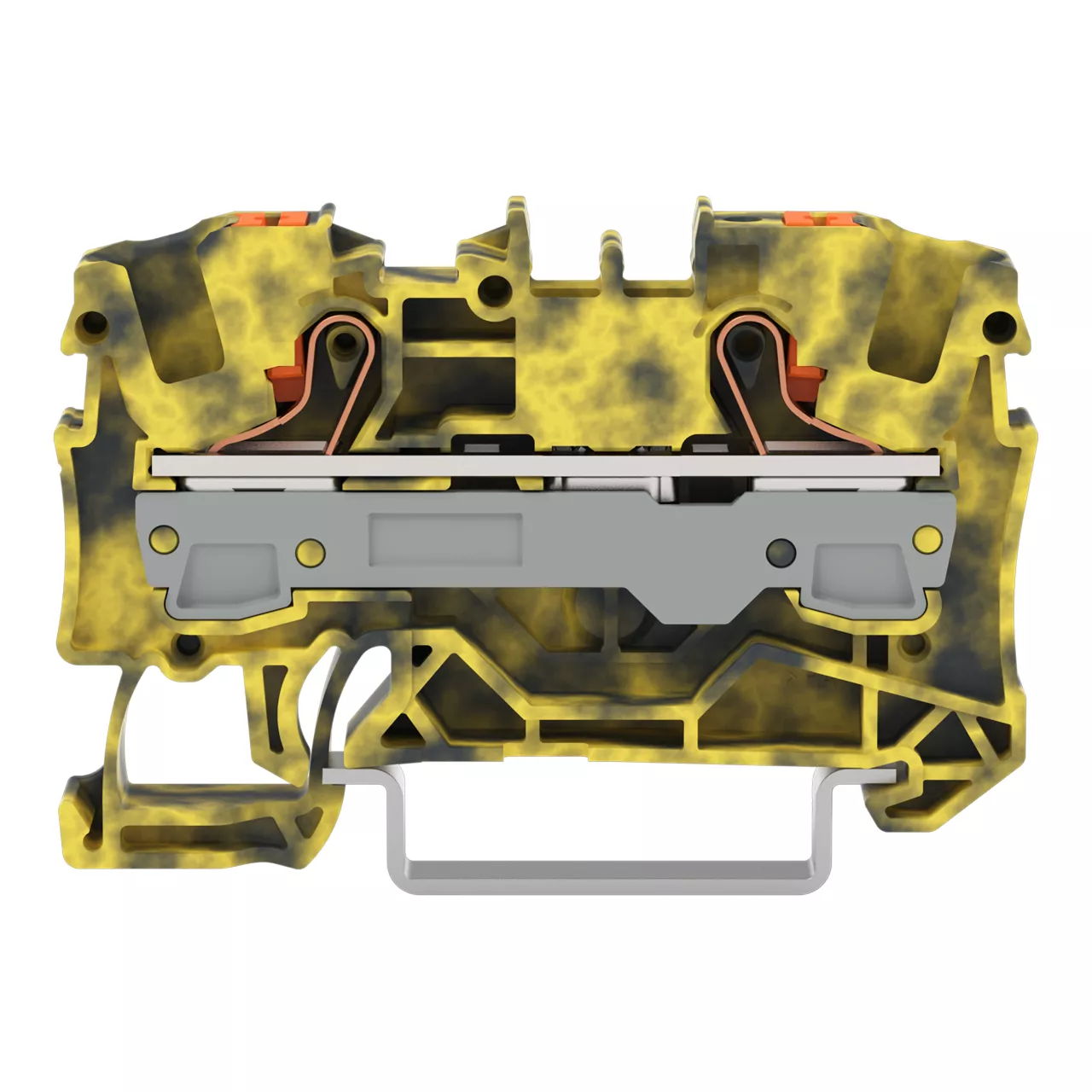 złączka przelotowa 2-przewodowa; z przyciskami; 6 mm²; z otworem pomiarowym; do zastosowań Ex e II; opis z boku i na środku; na szynę TS 35 x 15 i 35 x 7,5; Push-in CAGE CLAMP®; 6,00 mm²; ciemnoszary-żółty