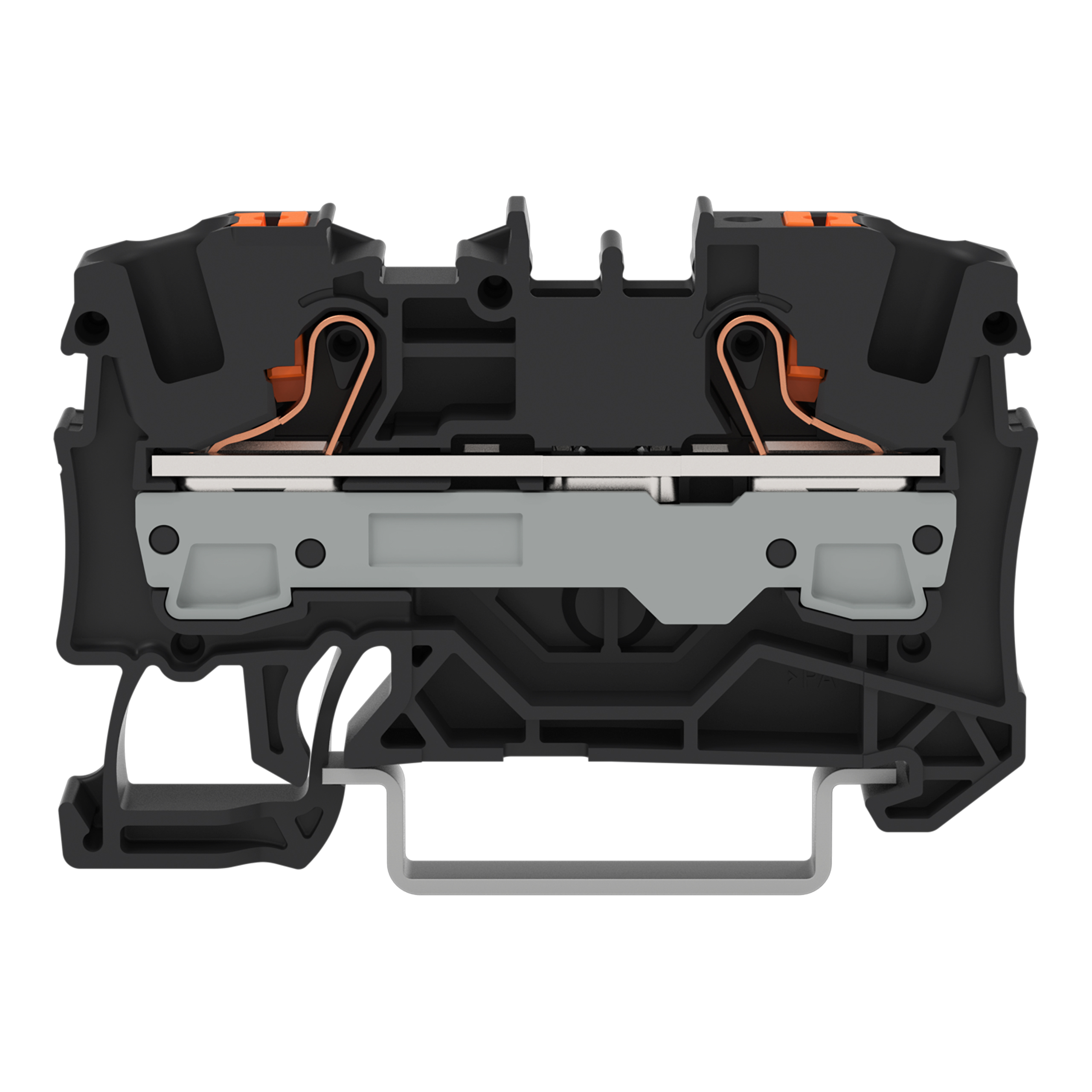 złączka przelotowa 2-przewodowa; z przyciskami; 6 mm²; z otworem pomiarowym; do zastosowań Ex e II; opis z boku i na środku; na szynę TS 35 x 15 i 35 x 7,5; Push-in CAGE CLAMP®; 6,00 mm²; czarny