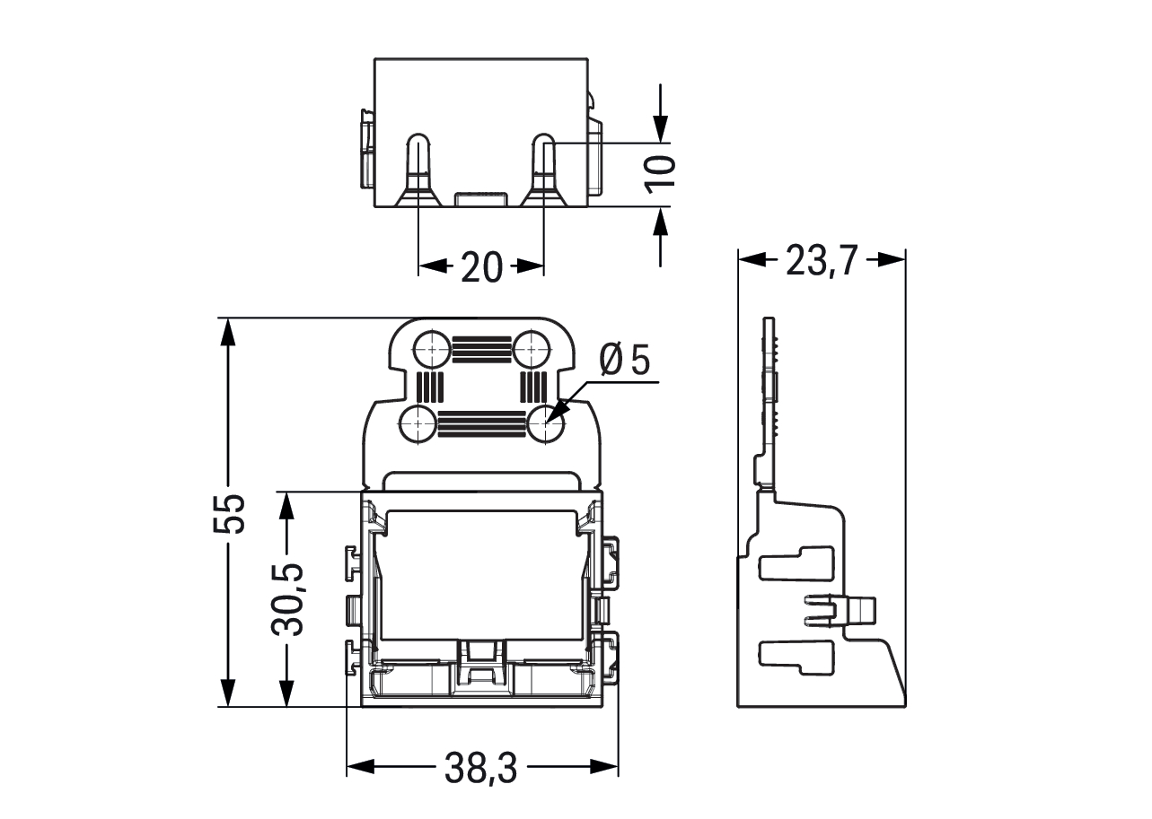 adapter montaż. z odciążeniem przewodów; do złączek 10-przewodowych; seria 221, 4 mm²; do mocowania śrubowego; czarny