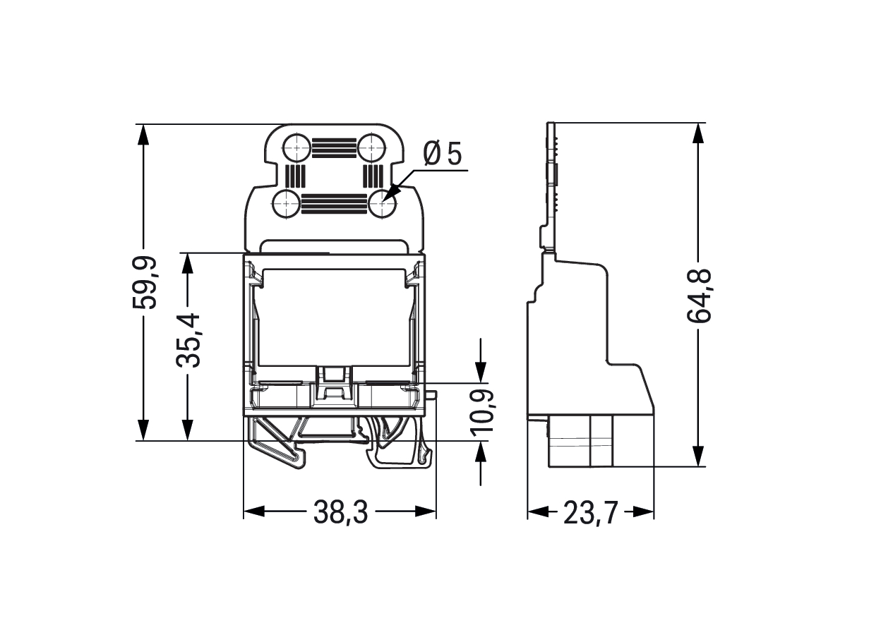 adapter montaż. z odciążeniem przewodów; do złączek 10-przewodowych; seria 221, 4 mm²; na szynę 15; do zastosowań Ex; jasnoszary