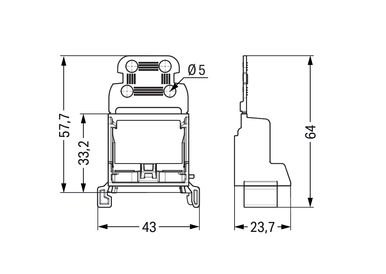 Adapter montażowy z odciążeniem przewodów do złączek 10-przewodowych seria 221, 4 mm², jasnoszary