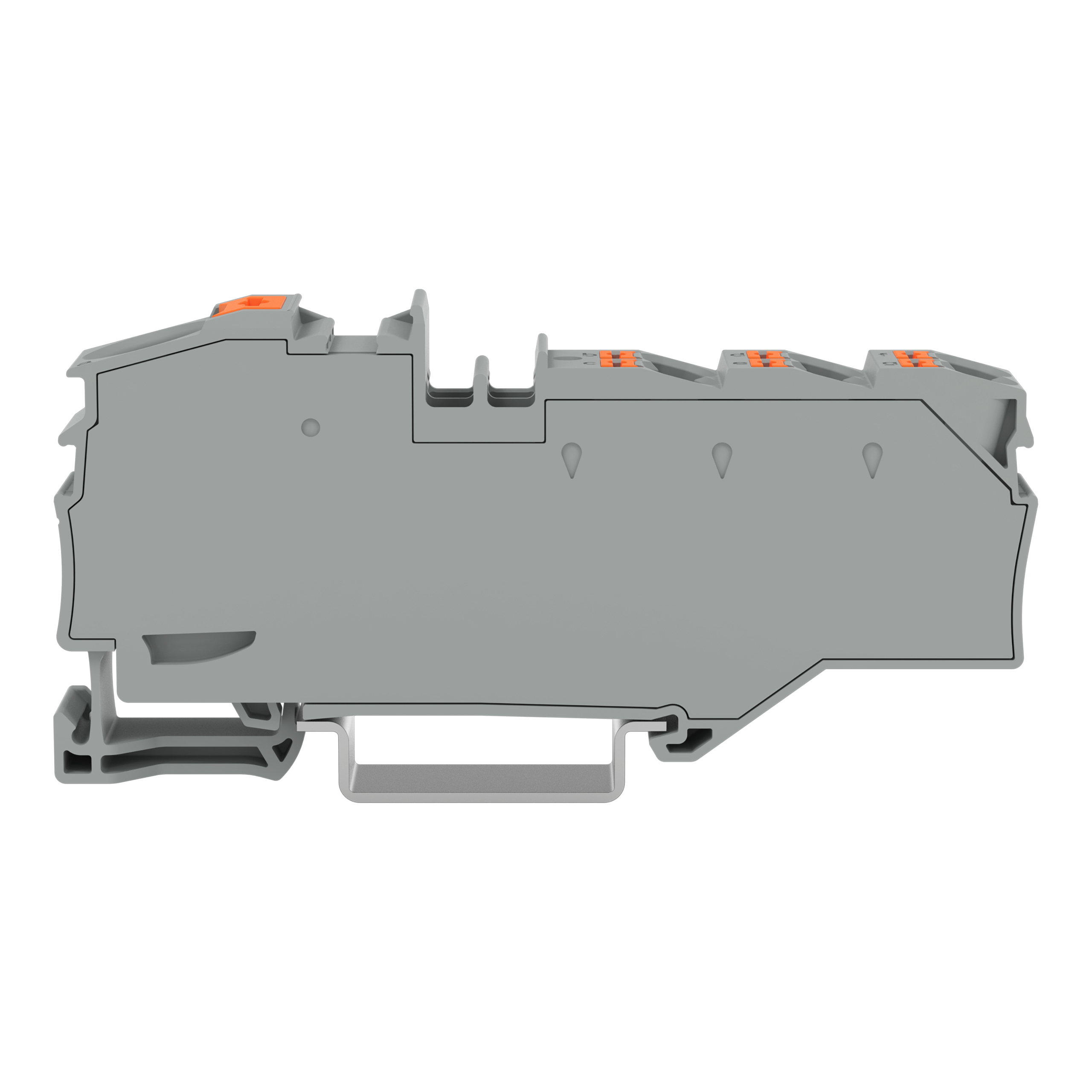 złączka rozgałęźna; z przyciskami; 1 x 16 mm² / 6 x 4 mm²; ze zintegrowaną ścianką końcową; do zastosowań Ex e II; opis z boku i na środku; na szynę TS 35 x 15 i 35 x 7,5; Push-in CAGE CLAMP®; 16,00 mm²; szary