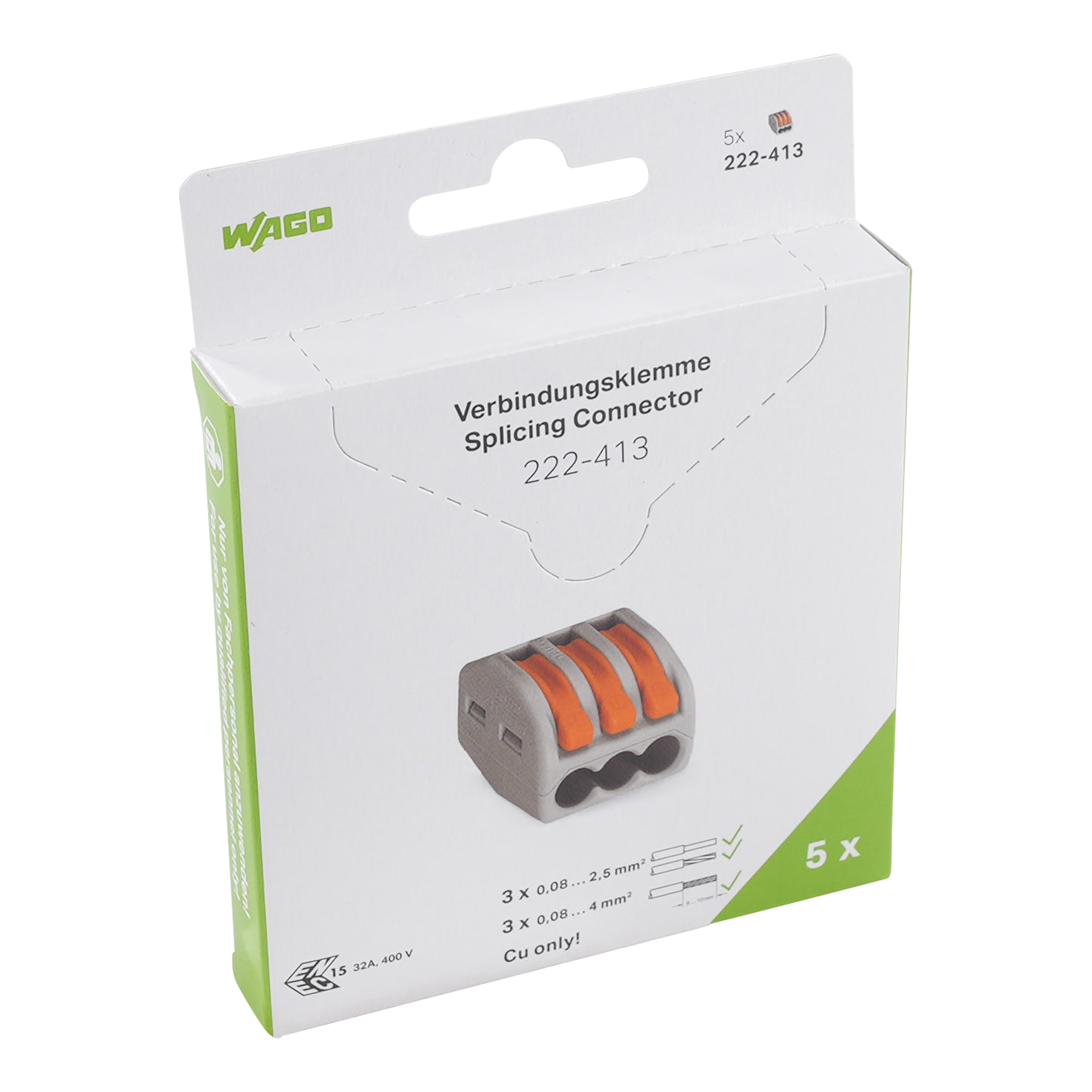 złączka instalacyjna z dźwignią; do wszystkich rodzajów przewodów; maks. 4 mm²; 3-przew.; kolor obudowy szary; temperatura otoczenia maks. 40°C; 2,50 mm²; szary