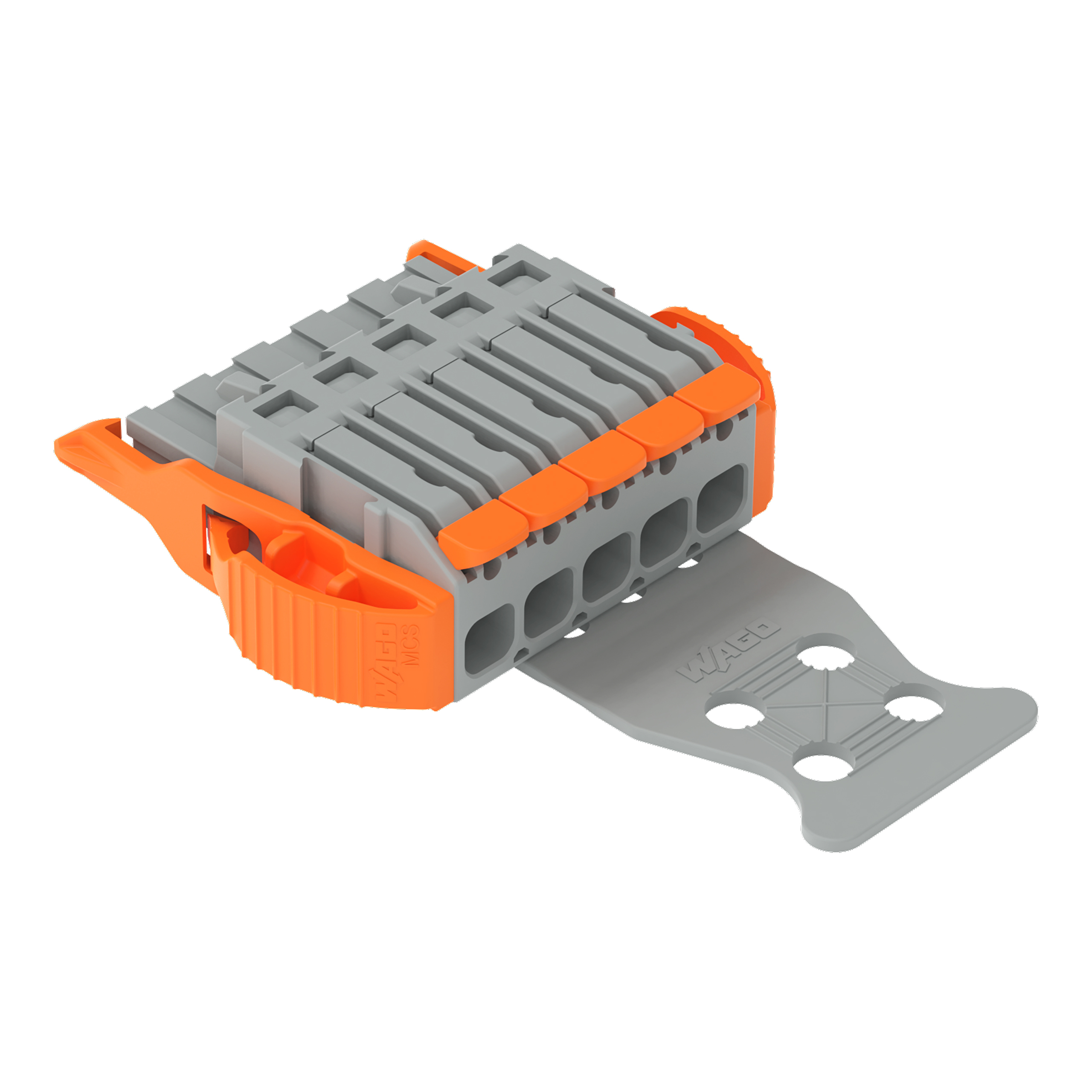 gniazdo 1-przewodowe; dźwignia; Push-in CAGE CLAMP®; 2,5 mm²; raster 5 mm; 5-bieg.; boczne zaczepy ryglujące; płytka odciążająca przewody; szary