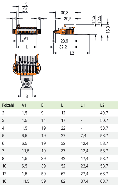 gniazdo 1-przewodowe; dźwignia; Push-in CAGE CLAMP®; 2,5 mm²; raster 5 mm; 7-bieg.; boczne zaczepy ryglujące; płytka odciążająca przewody; szary