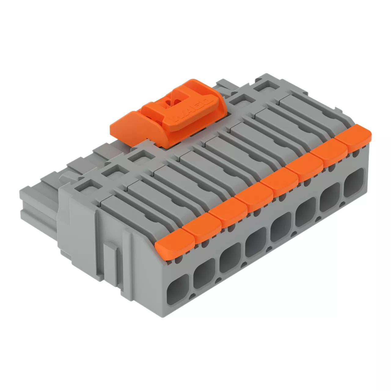 gniazdo 1-przewodowe; dźwignia; Push-in CAGE CLAMP®; 2,5 mm²; raster 5 mm; 8-bieg.; środkowy zaczep ryglujący; 2,50 mm²; szary
