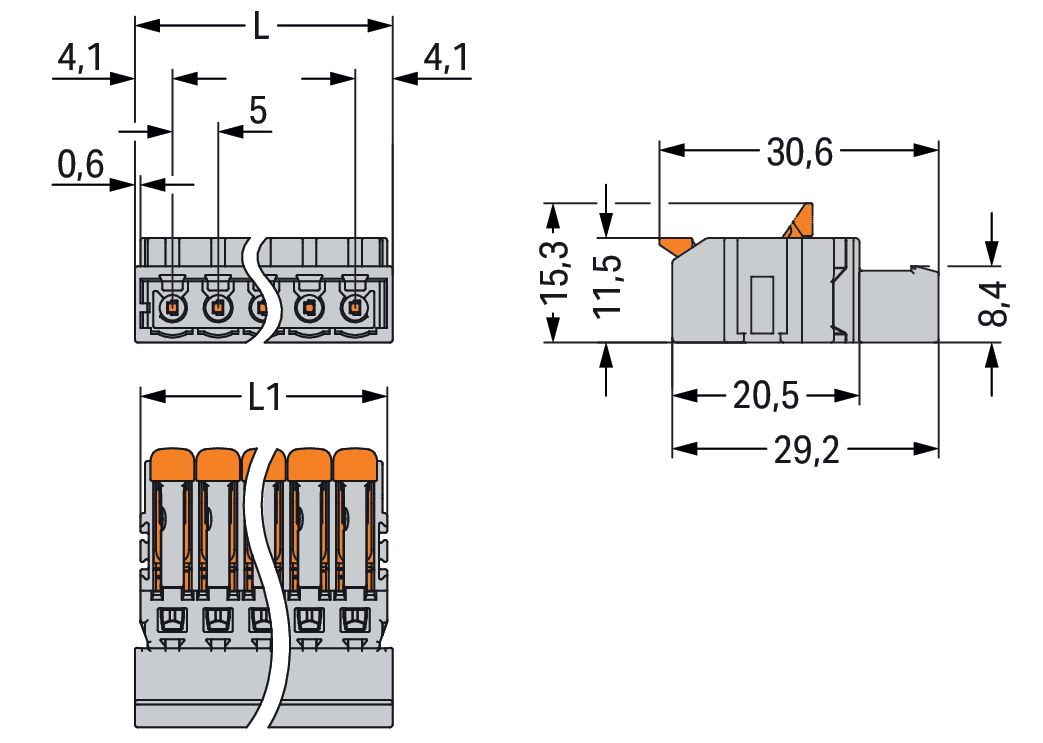 wtyk 1-przewodowy; dźwignia; Push-in CAGE CLAMP®; 2,5 mm²; raster 5 mm; 7-bieg.; 2,50 mm²; szary
