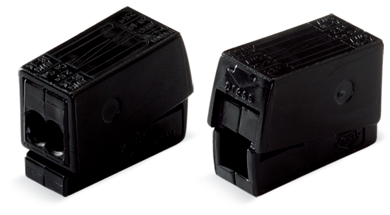 2-przewodowa złączka oświetleniowa przyciski: od strony oprawy ośw., czarna