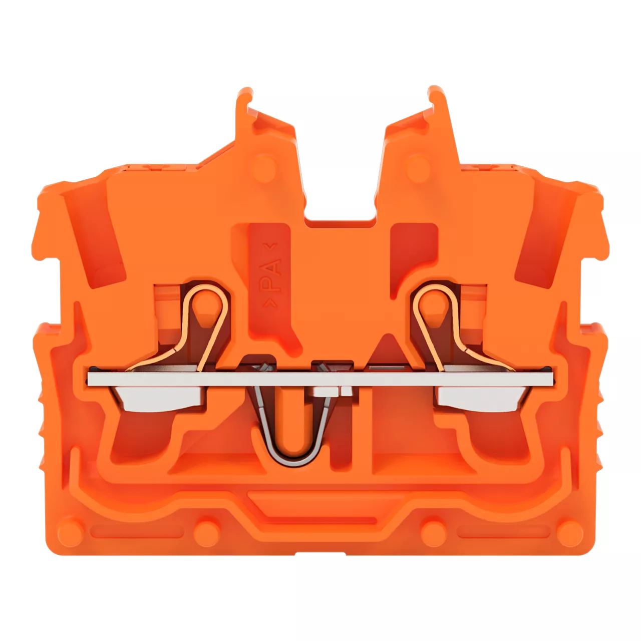 złączka przelotowa Mini 2-przewodowa; z przyciskami; 1 mm²; zł. wewn. bez stopki zatrz. bez uchwytu; opis z boku i na środku; z otworem pomiarowym; Push-in CAGE CLAMP®; 1,00 mm²; pomarańczowy