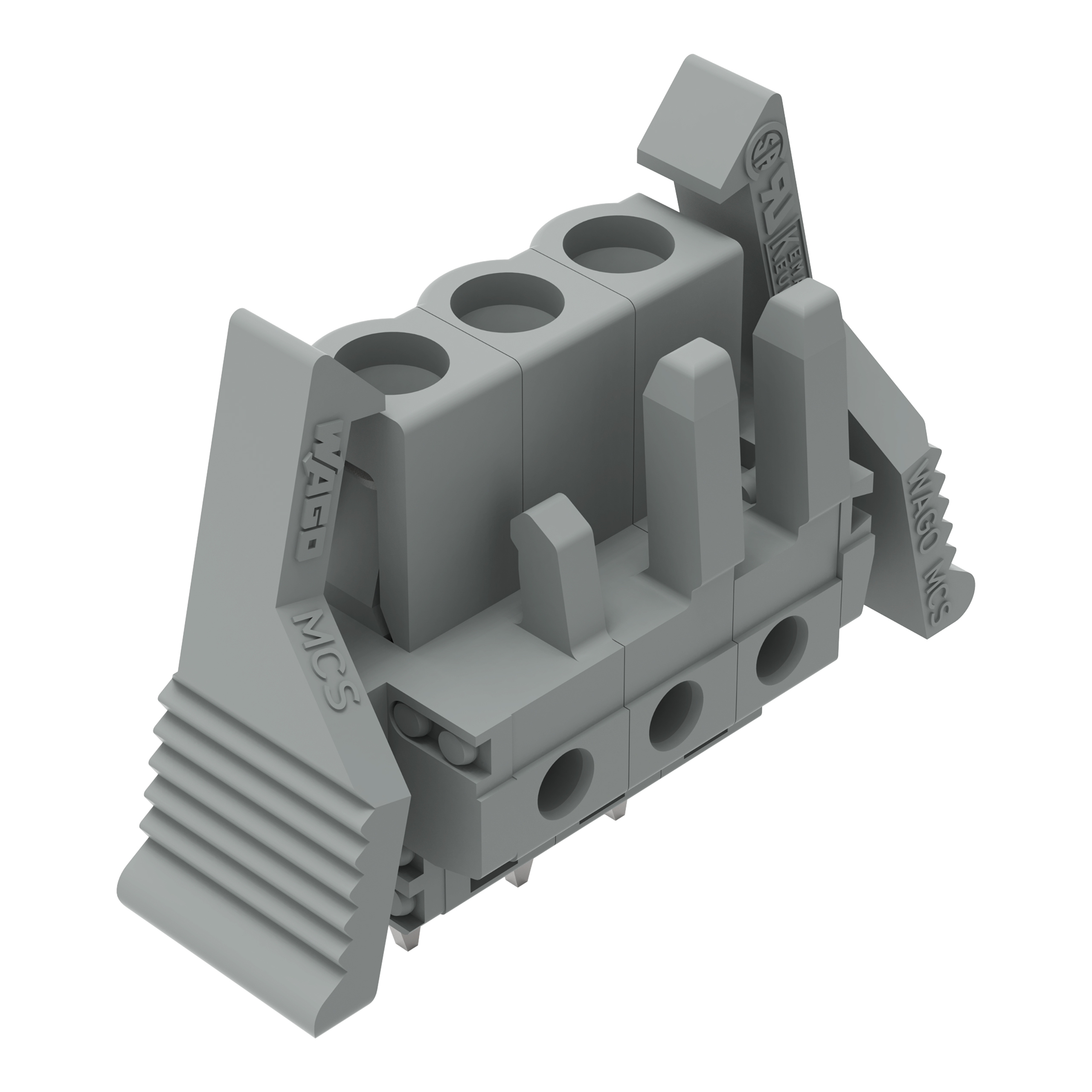 gniazdo THT; konstrukcja prosta; raster 5 mm; 3-bieg.; zaczep ryglujący; pin lutowniczy 0,6 x 1,0 mm; szary