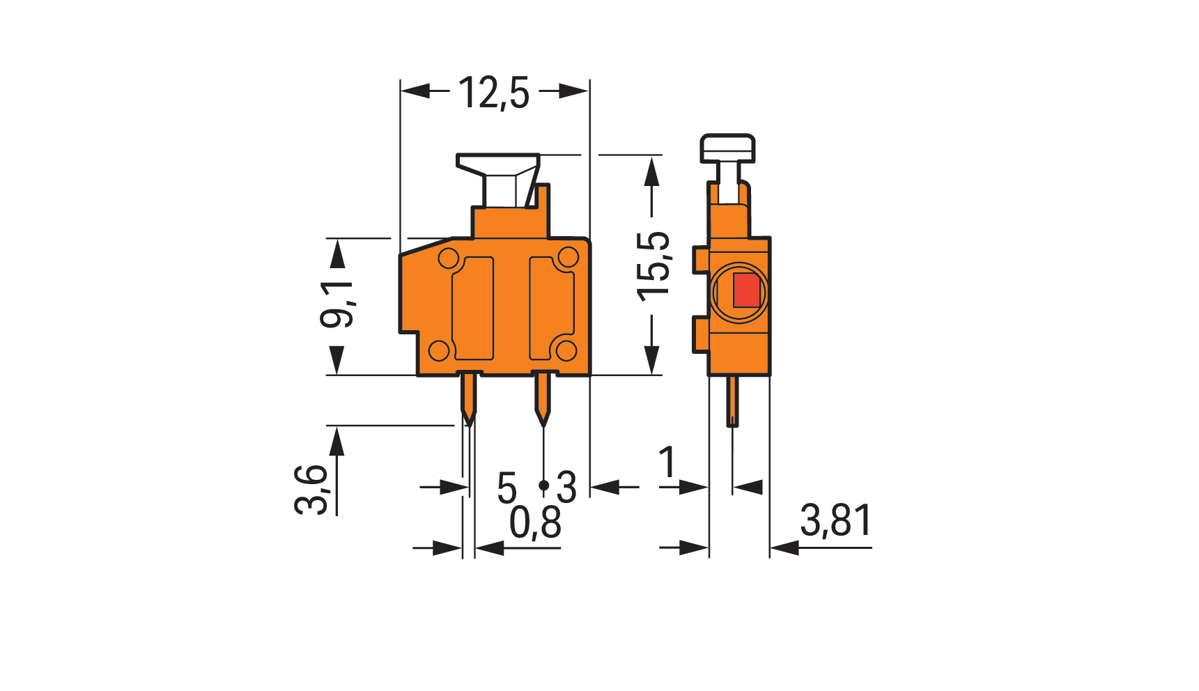 Modularna złączka do płytek drukowanych przycisk 1,5 mm² RM 3,81 mm 1-bieg, pomarańczowa
