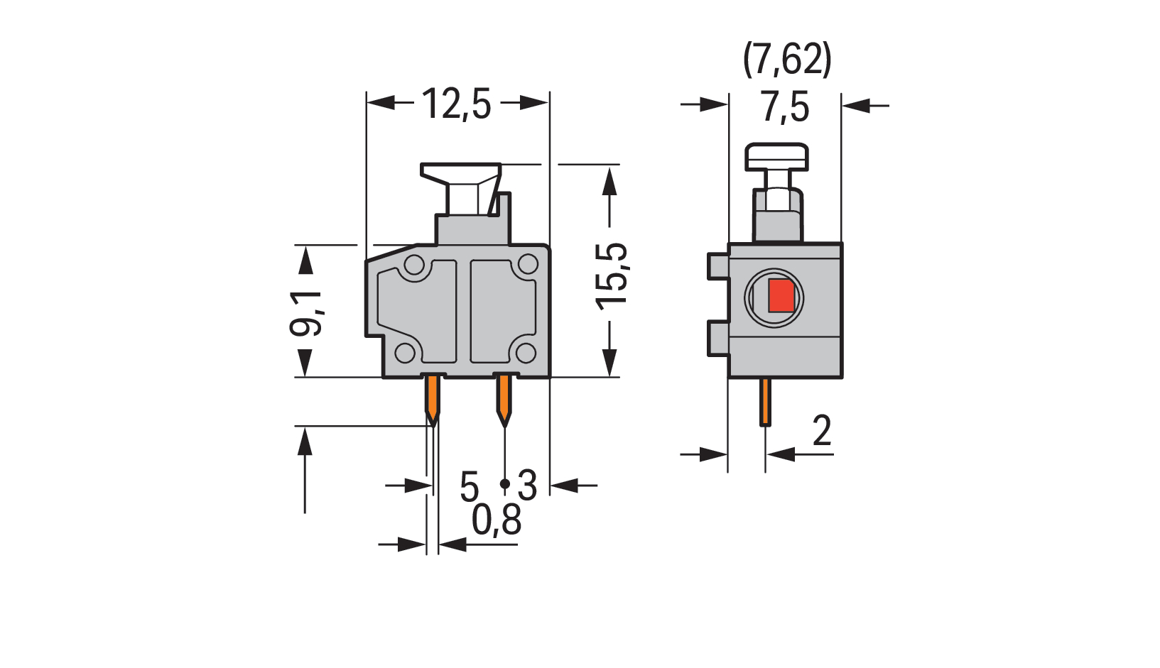Modularna złączka do płytek drukowanych przycisk 1,5 mm² RM 7,5/7,62 mm 1-bieg, ciemnoszary