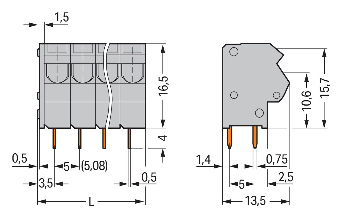 2-przew złączka do płytek drukowanych 0,75 mm² RM 5/5,08 mm 24-bieg, szara