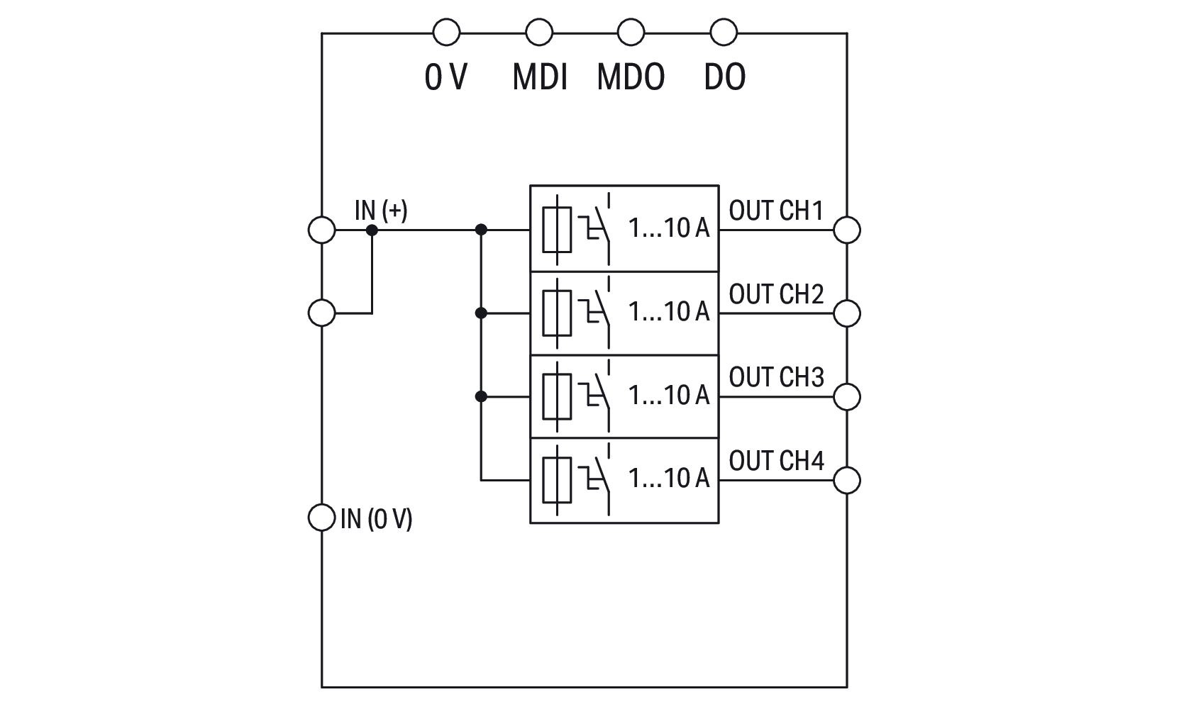 Electronic circuit breaker; 4-channel; 24 VDC input voltage; adjustable 1 … 10 A; Manchester
