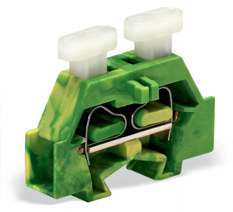 2-przewodowa złączka końcowa bez uchwytu montażowego przycisk po obu stronach bez uchwytu montażowego, żółto-zielona