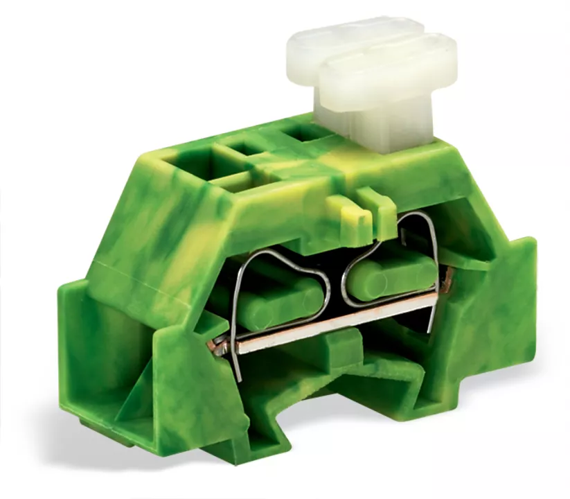 złączka 4-przewodowa; przyciski po jednej stronie; z uchwytem montażowym; 1-bieg.; do mocowania śrubowego i podobnego typu; otwór montażowy Ø 3,2 mm; 2,5 mm²; CAGE CLAMP®; 2,50 mm²; żółto-zielony