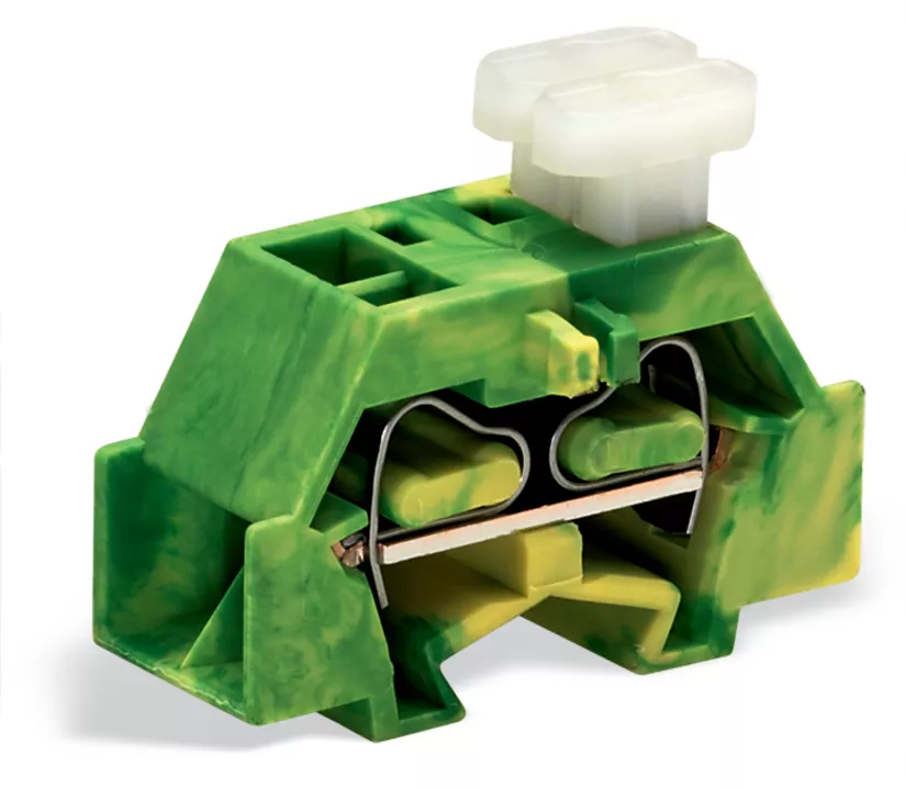 złączka końcowa 4-przewodowa bez uchwytu montażowego; przyciski po jednej stronie; bez uchwytu montażowego; 1-bieg.; do listew zaciskowych ze stopkami zatrzaskowymi; 2,5 mm²; CAGE CLAMP®; 2,50 mm²; żółto-zielony