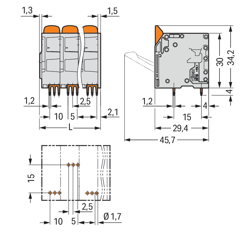 Złącze do PCB dźwignia 16 mm² raster 10 mm 5-bieg., szary