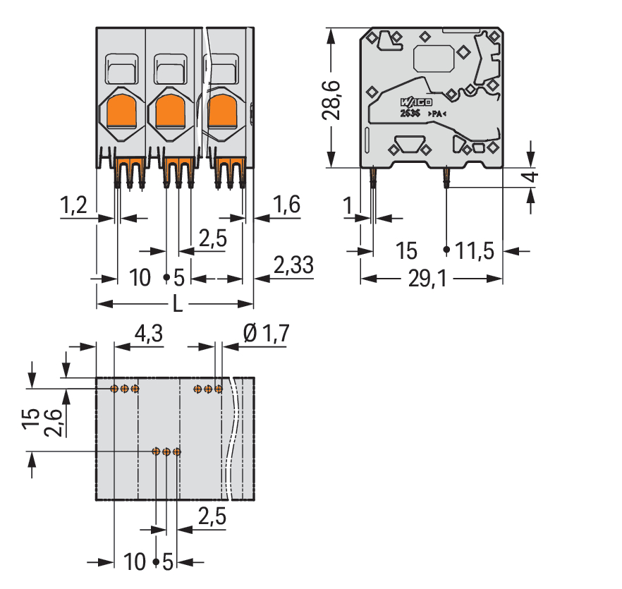 złącze do PCB; 16 mm²; raster 10 mm; 2-bieg.; Push-in CAGE CLAMP®; 16,00 mm²; czerwony