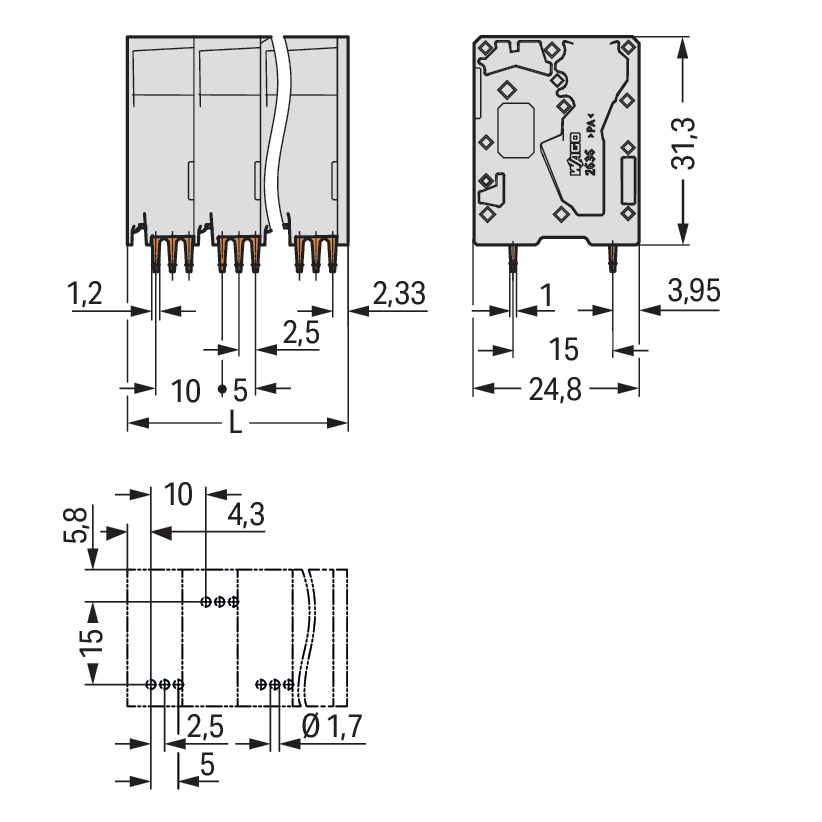 Złącze do PCB 16 mm² raster 10 mm 4-bieg., szary