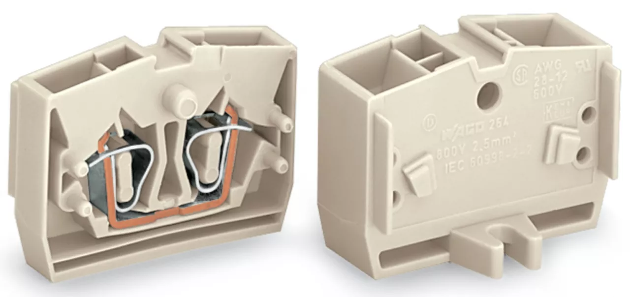 złączka końcowa 2-przewodowa; bez przycisków; do zastosowań Ex e II; z uchwytem montażowym; 1-bieg.; do mocowania śrubowego i podobnego typu; otwór montażowy Ø 3,2 mm; 2,5 mm²; CAGE CLAMP®; 2,50 mm²; jasnoszary