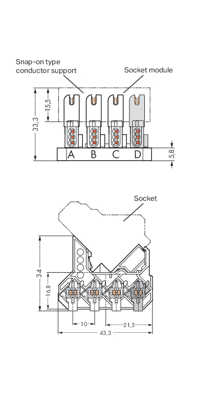 uzupełniające gniazdo do montażu zatrzaskowego; bez styku PE; 3-bieg.; 1,00 mm²; szary/biały