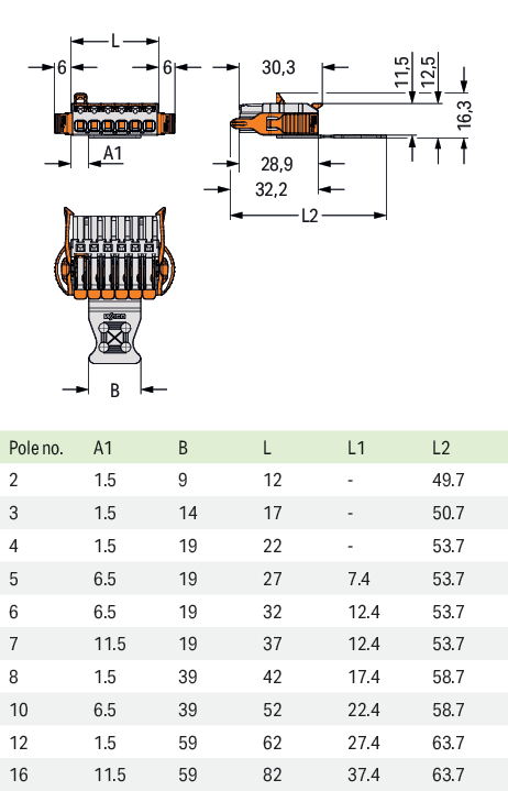 gniazdo 1-przewodowe; dźwignia; Push-in CAGE CLAMP®; 2,5 mm²; raster 5 mm; 3-bieg.; pełna ochr. przed bł.podł., wypust kod.; boczne zaczepy ryglujące; płytka odciążająca przewody; jasnoszary