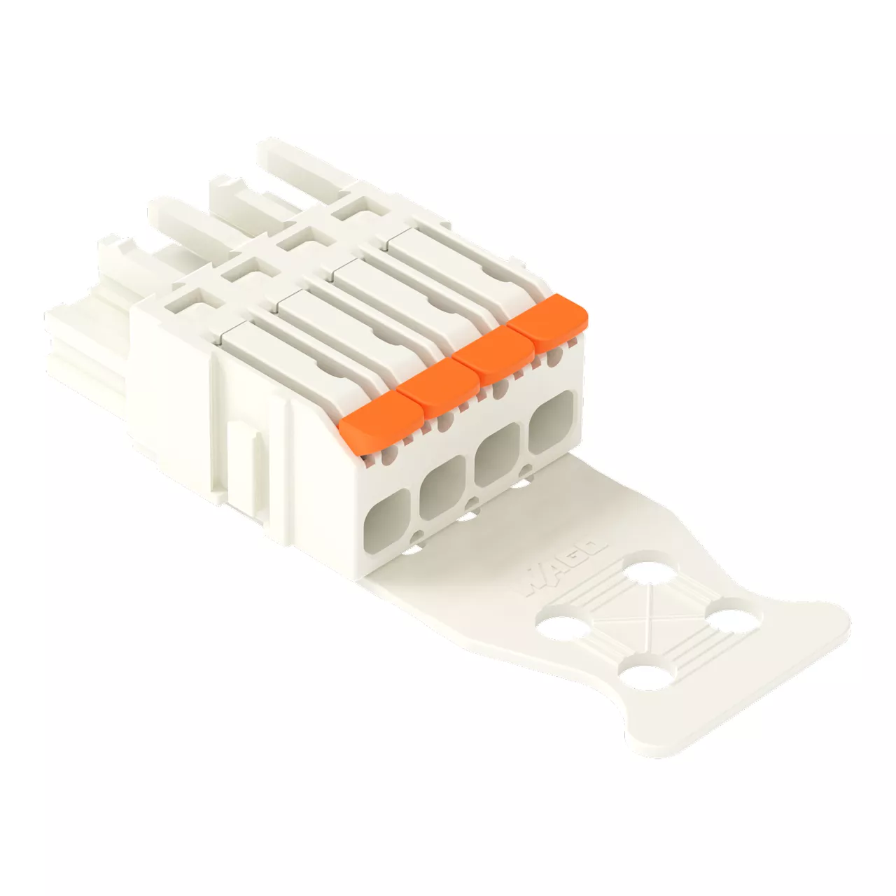 gniazdo 1-przewodowe; dźwignia; Push-in CAGE CLAMP®; 2,5 mm²; raster 5 mm; 4-bieg.; pełna ochr. przed bł.podł., wypust kod.; płytka odciążająca przewody; jasnoszary