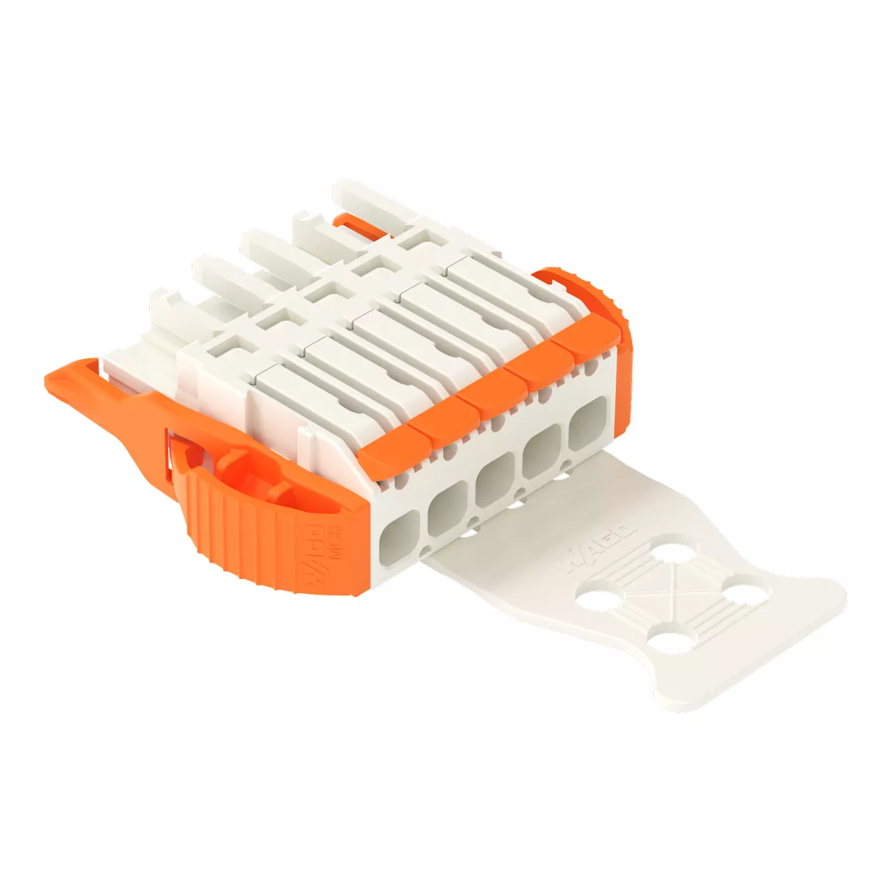 gniazdo 1-przewodowe; dźwignia; Push-in CAGE CLAMP®; 2,5 mm²; raster 5 mm; 5-bieg.; pełna ochr. przed bł.podł., wypust kod.; boczne zaczepy ryglujące; płytka odciążająca przewody; jasnoszary