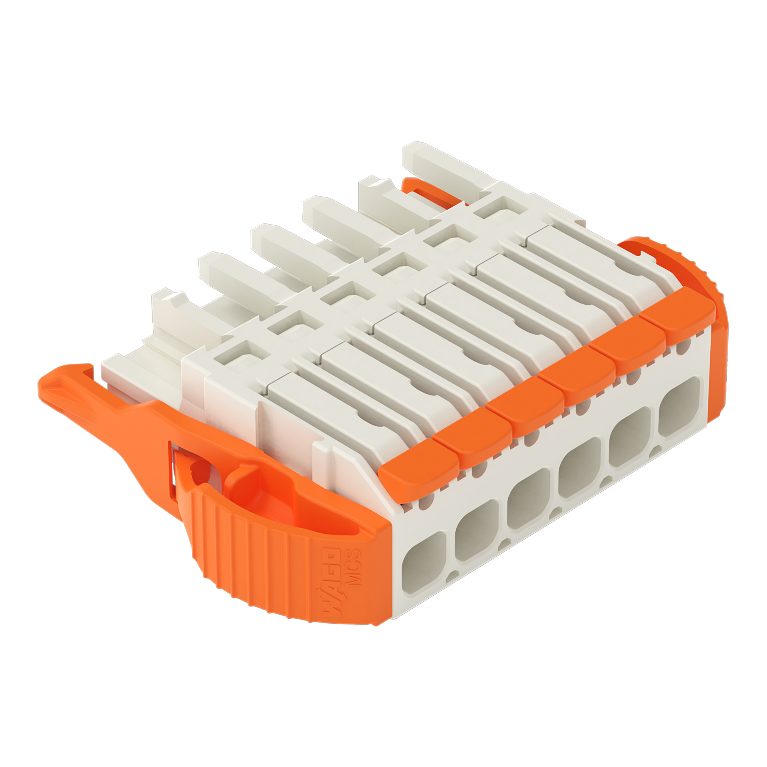 gniazdo 1-przewodowe; dźwignia; Push-in CAGE CLAMP®; 2,5 mm²; raster 5 mm; 6-bieg.; pełna ochr. przed bł.podł., wypust kod.; boczne zaczepy ryglujące; 2,50 mm²; jasnoszary