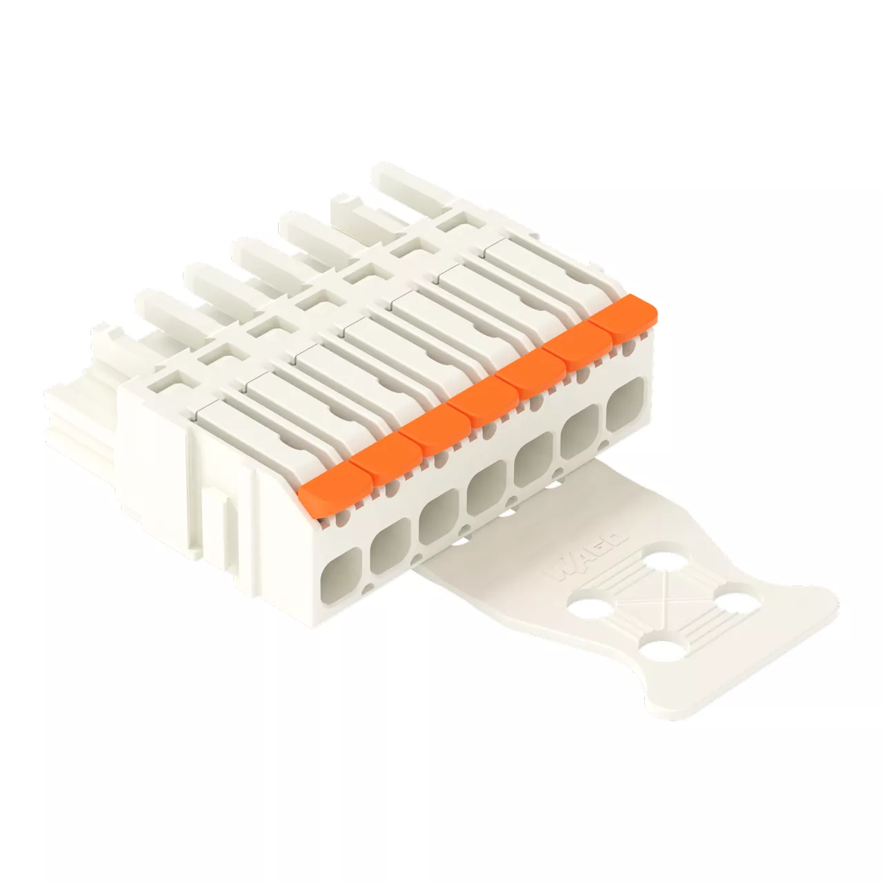 gniazdo 1-przewodowe; dźwignia; Push-in CAGE CLAMP®; 2,5 mm²; raster 5 mm; 7-bieg.; pełna ochr. przed bł.podł., wypust kod.; płytka odciążająca przewody; jasnoszary