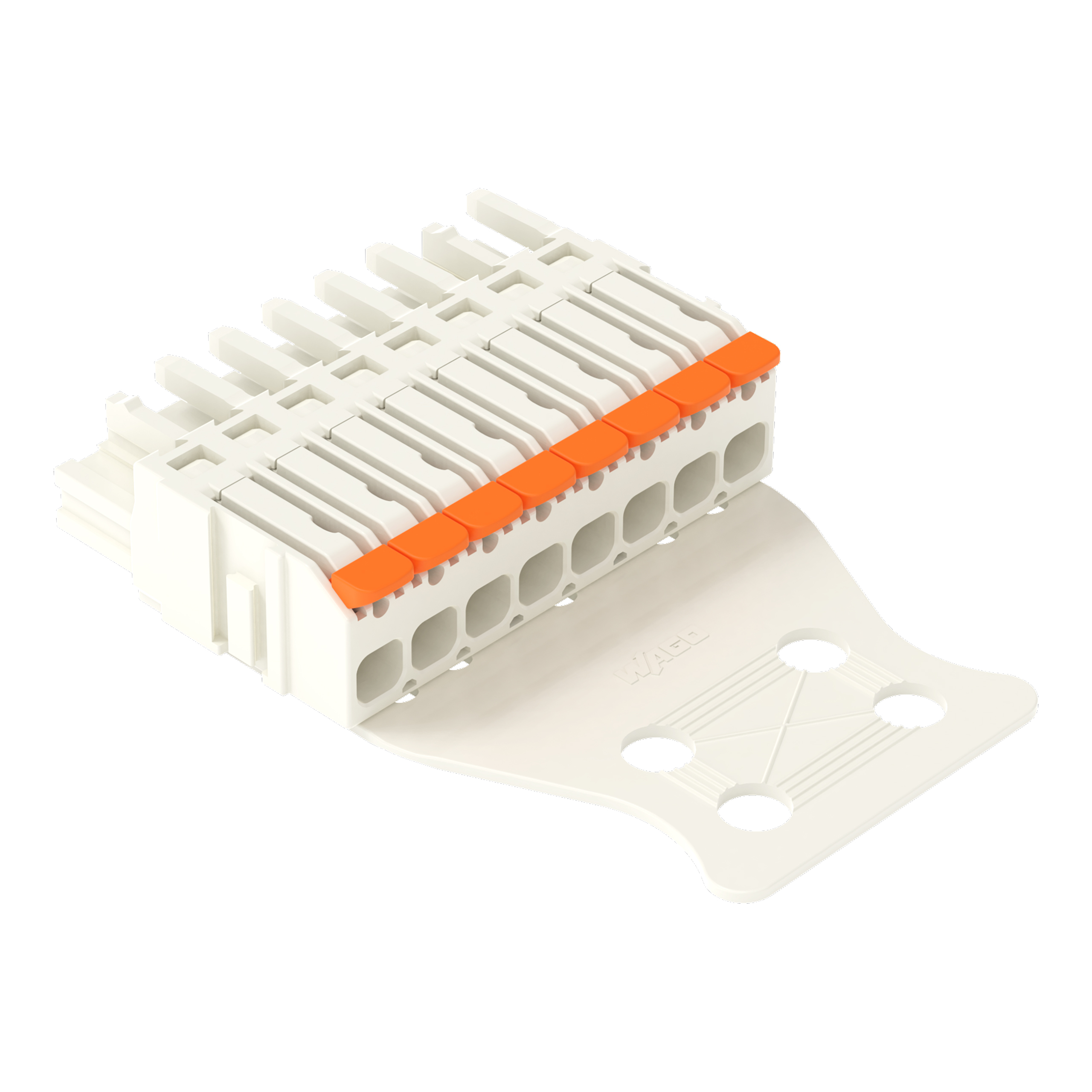 gniazdo 1-przewodowe; dźwignia; Push-in CAGE CLAMP®; 2,5 mm²; raster 5 mm; 8-bieg.; pełna ochr. przed bł.podł., wypust kod.; płytka odciążająca przewody; jasnoszary