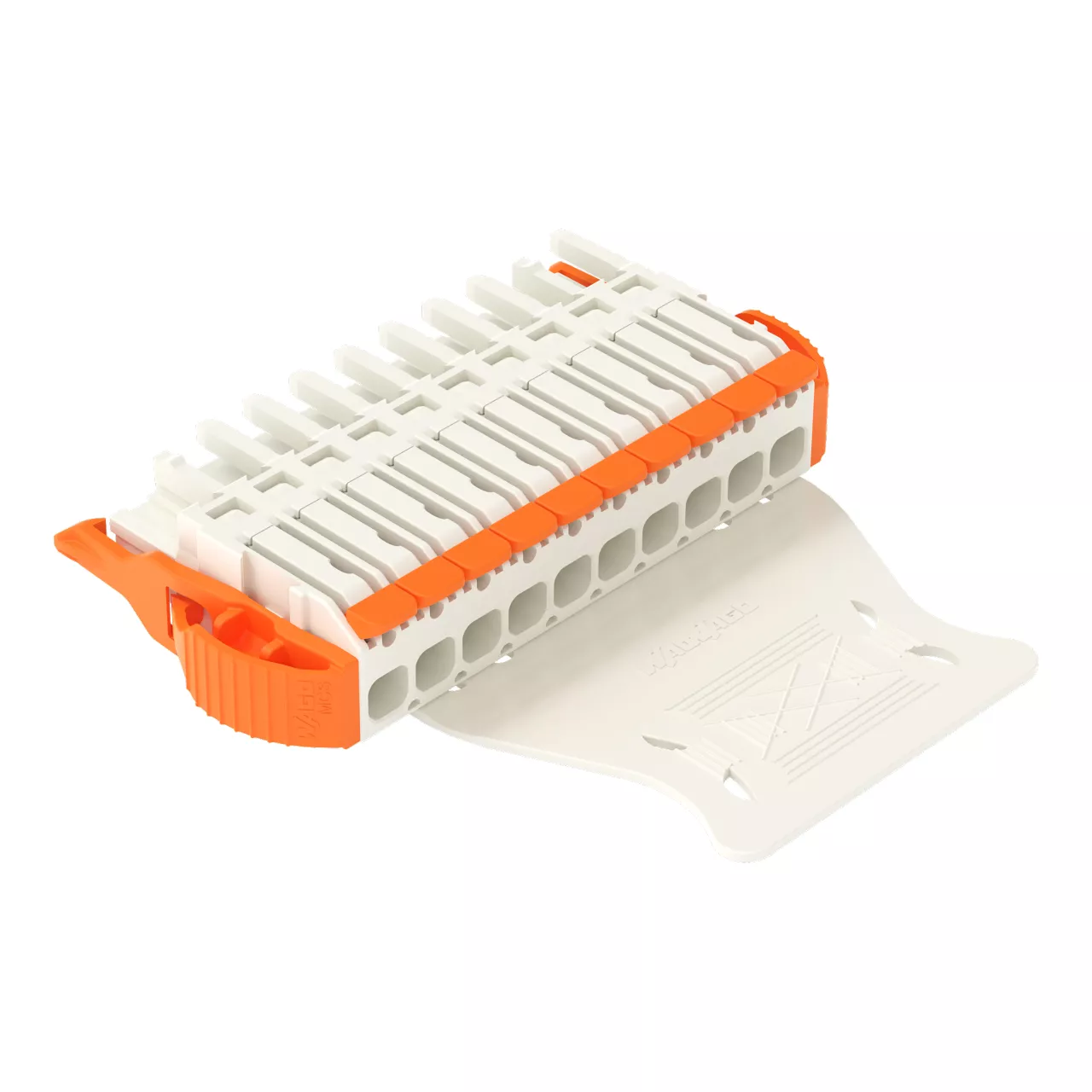 gniazdo 1-przewodowe; dźwignia; Push-in CAGE CLAMP®; 2,5 mm²; raster 5 mm; 10-bieg.; pełna ochr. przed bł.podł., wypust kod.; boczne zaczepy ryglujące; płytka odciążająca przewody; jasnoszary