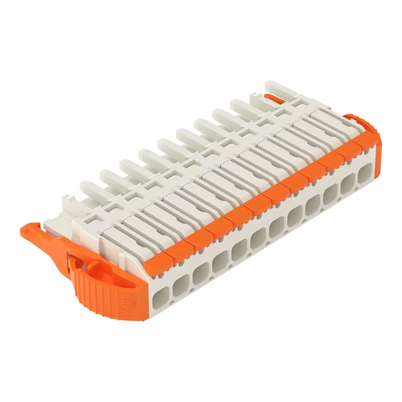 gniazdo 1-przewodowe; dźwignia; Push-in CAGE CLAMP®; 2,5 mm²; raster 5 mm; 12-bieg.; pełna ochr. przed bł.podł., wypust kod.; boczne zaczepy ryglujące; 2,50 mm²; jasnoszary