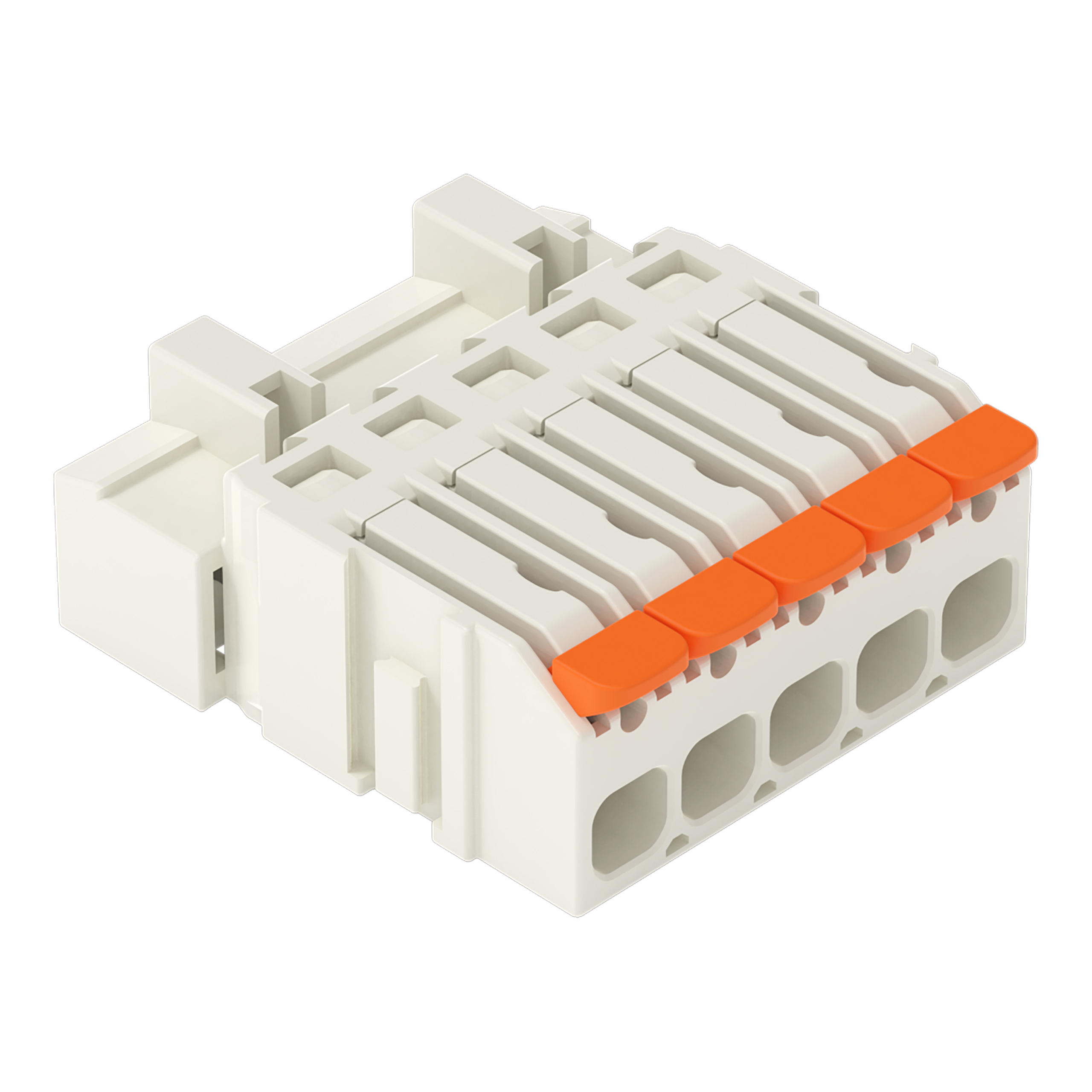 wtyk 1-przewodowy; dźwignia; Push-in CAGE CLAMP®; 2,5 mm²; raster 5 mm; 5-bieg.; wyprzedzający styk; 100% ochrona przed błędnym połączeniem; 2,50 mm²; jasnoszary