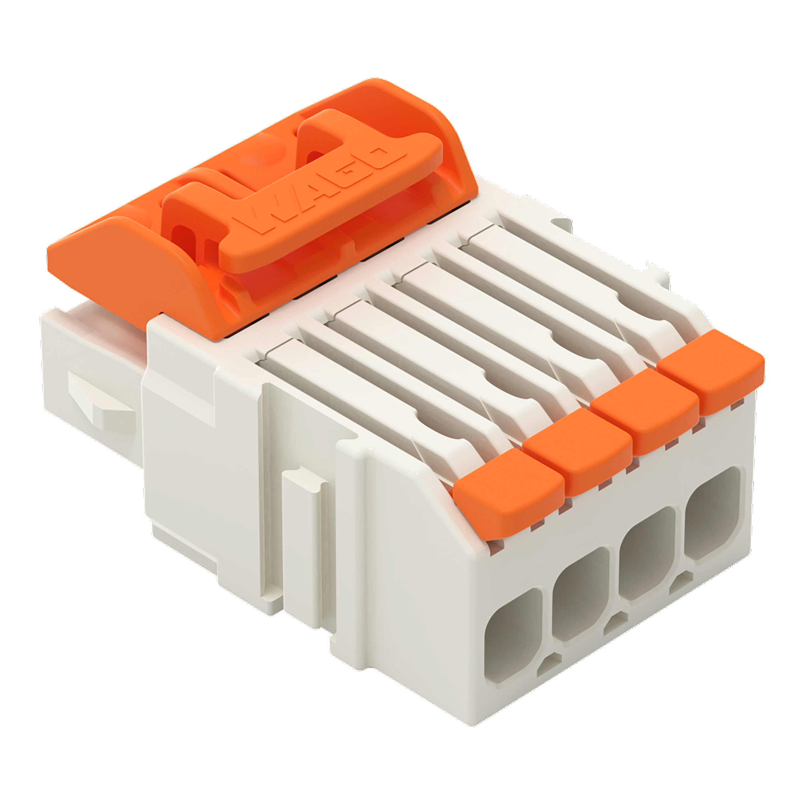 gniazdo 1-przewodowe; dźwignia; Push-in CAGE CLAMP®; 1,5 mm²; raster 3,5 mm; 4-bieg.; 100% ochrona przed błędnym połączeniem; środkowy zaczep ryglujący; 1,50 mm²; jasnoszary