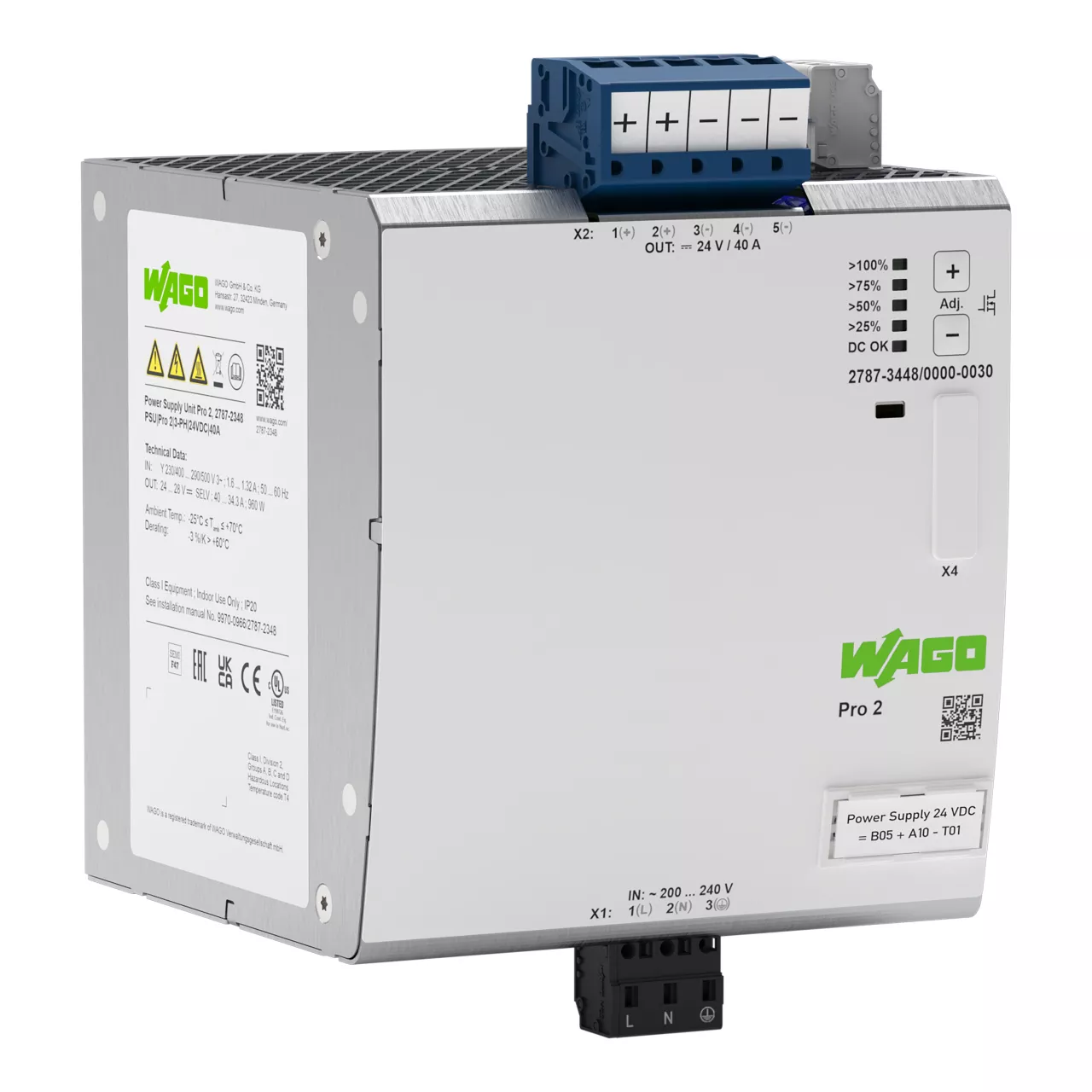 zasilacz; Pro 2; 1-faz.; napięcie wyjściowe 24 V DC; prąd wyjściowy 40 A; TopBoost + PowerBoost; z możliwością komunikacji; redundancja; znamionowe napięcie wejściowe 200 … 240 V AC