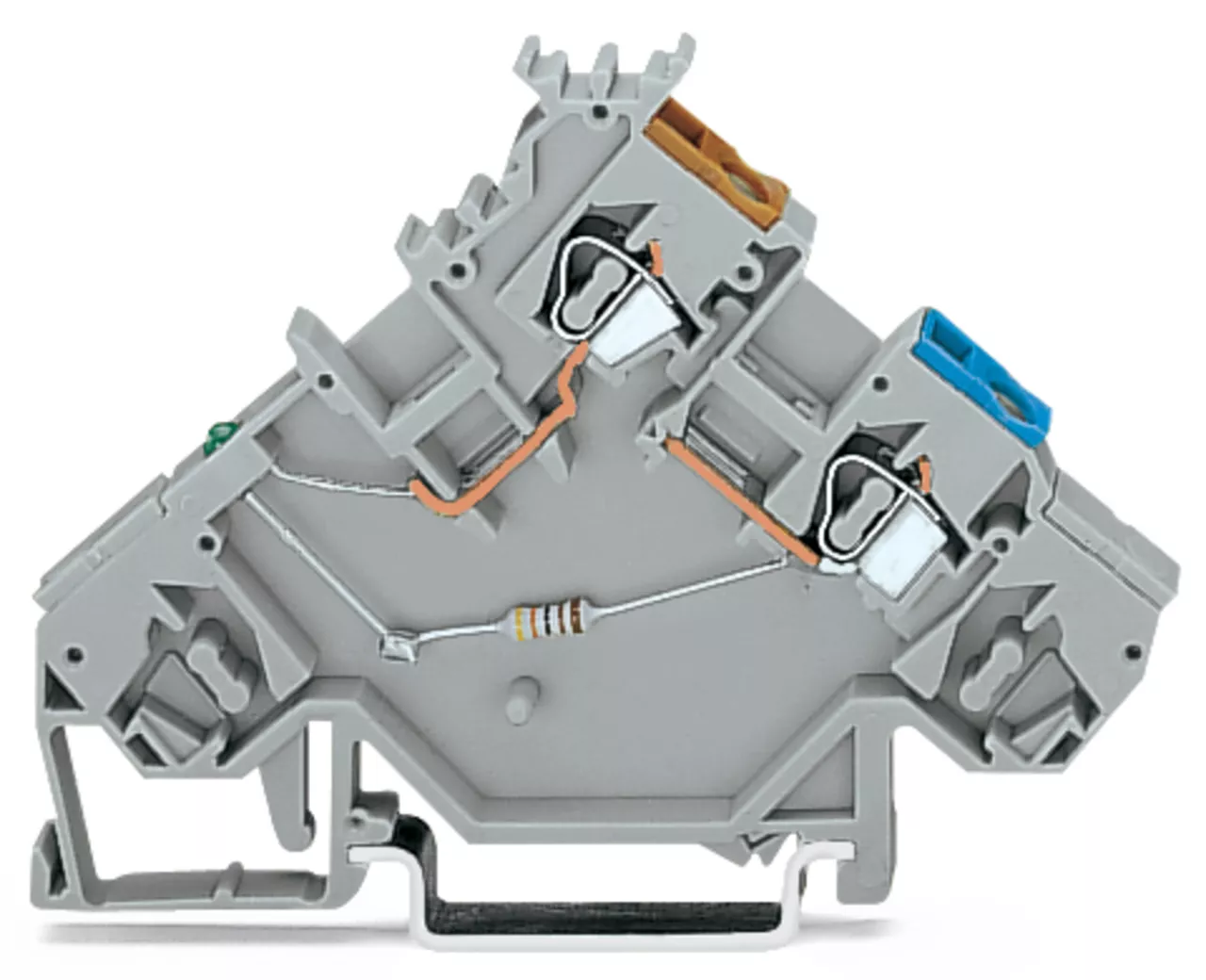złączka zasilająca sygnałowa 3-piętrowa; LED zielona; typu PNP; zasilanie od strony czujników; z otworami na przew. z kolor. nadrukiem; 2,5 mm²; CAGE CLAMP®; 2,50 mm²; szary