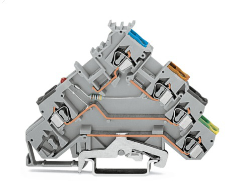 złączka sygnałowa 4-piętrowa; LED czerwona; typu NPN; z otworami na przew. z kolor. nadrukiem; 2,5 mm²; CAGE CLAMP®; 2,50 mm²; szary