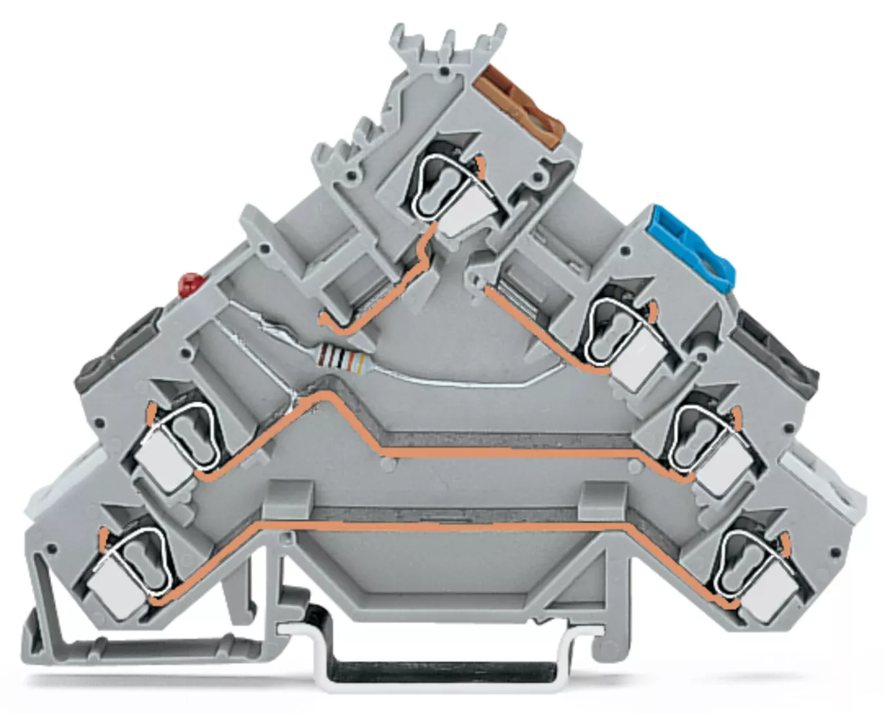 złączka sygnałowa 4-piętrowa; LED czerwona; typu NPN; z otworami na przew. z kolor. nadrukiem; 2,5 mm²; CAGE CLAMP®; 2,50 mm²; szary