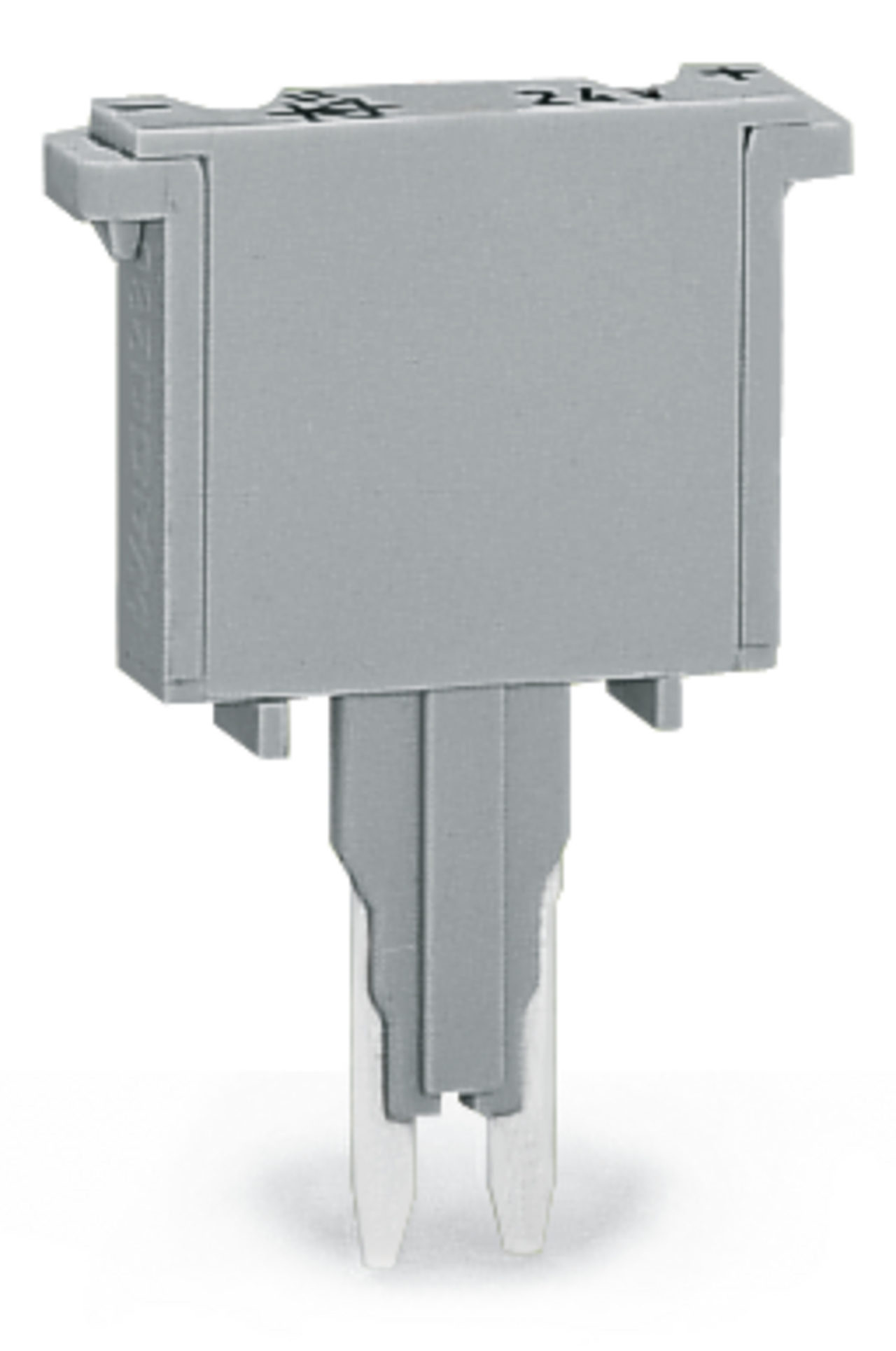 wtyk bezpiecznikowy; z wlutowanym bezpiecznikiem miniaturowym; 1 A FF; szerokość 5 mm; szary