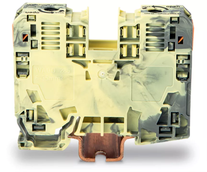 złączka przelotowa 2-przewodowa; 35 mm²; boczne miejsca na oznaczniki; tylko na szynę TS 35 x 15; POWER CAGE CLAMP; 35,00 mm²; ciemnoszary-żółty